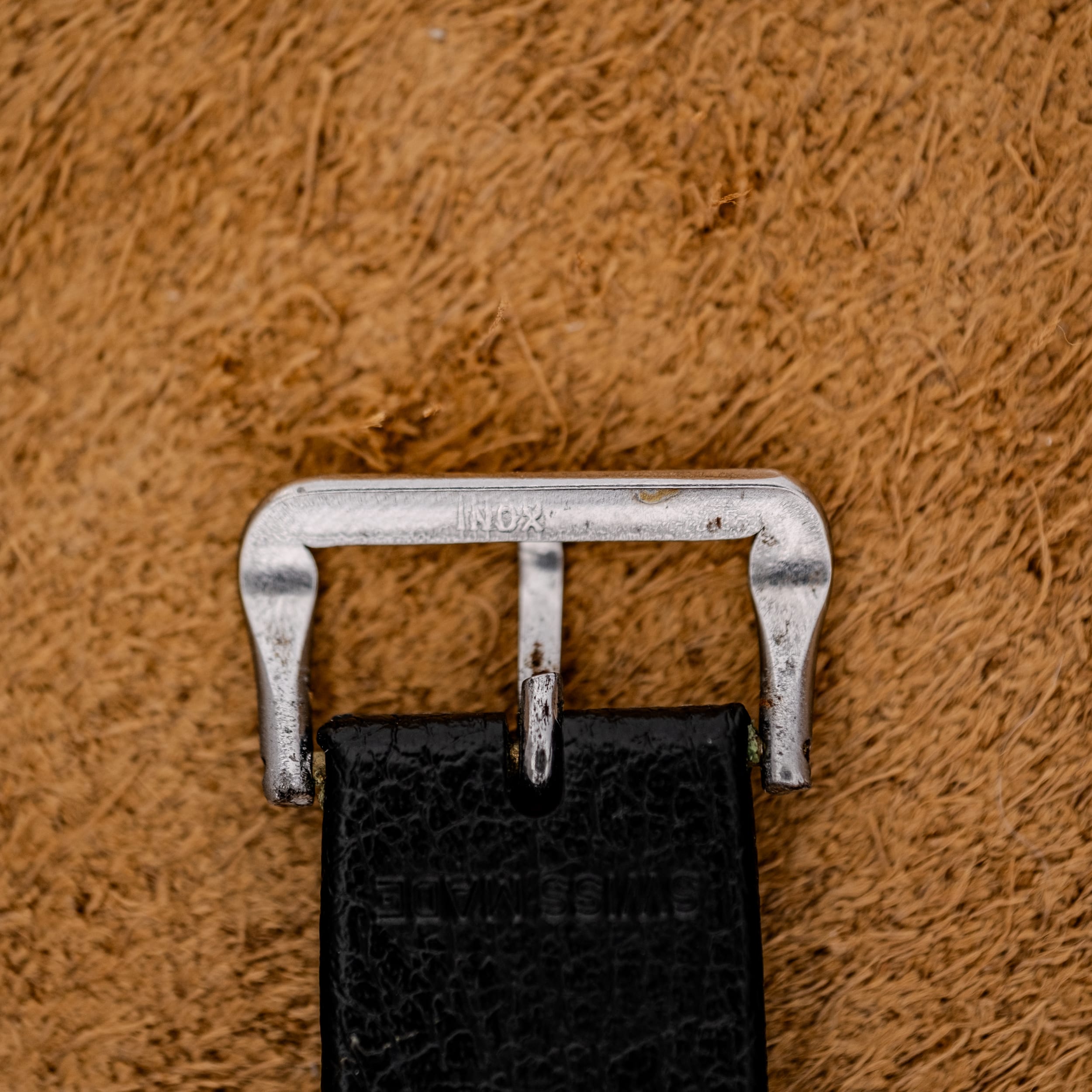 Inside, the manually wound Enicar Caliber AR 1010 sits in its characteristic copper-toned livery. The AR designation honors founder Ariste Racine, and this 17-jewel movement, which first received its certificate of accuracy from Enicar in 1954, represents the brand’s earliest generation of in-house calibers. It is a movement that predates the later AR 1120 and was the original powerplant of the Seapearl line, making its presence in this example a notable detail for serious Enicar collectors. Known for its robust reliability and straightforward serviceability, the AR 1010 is a workhorse in every sense of the word.