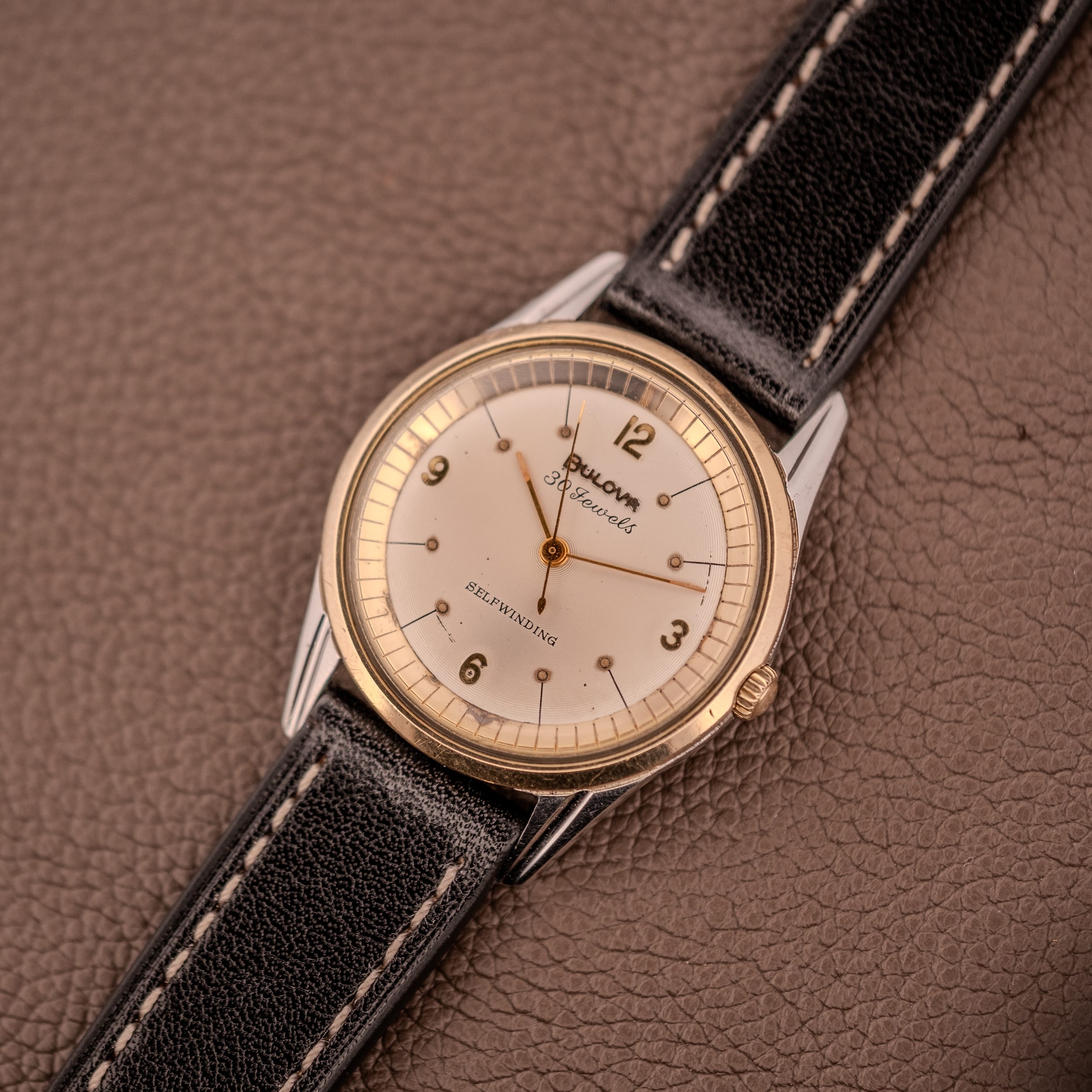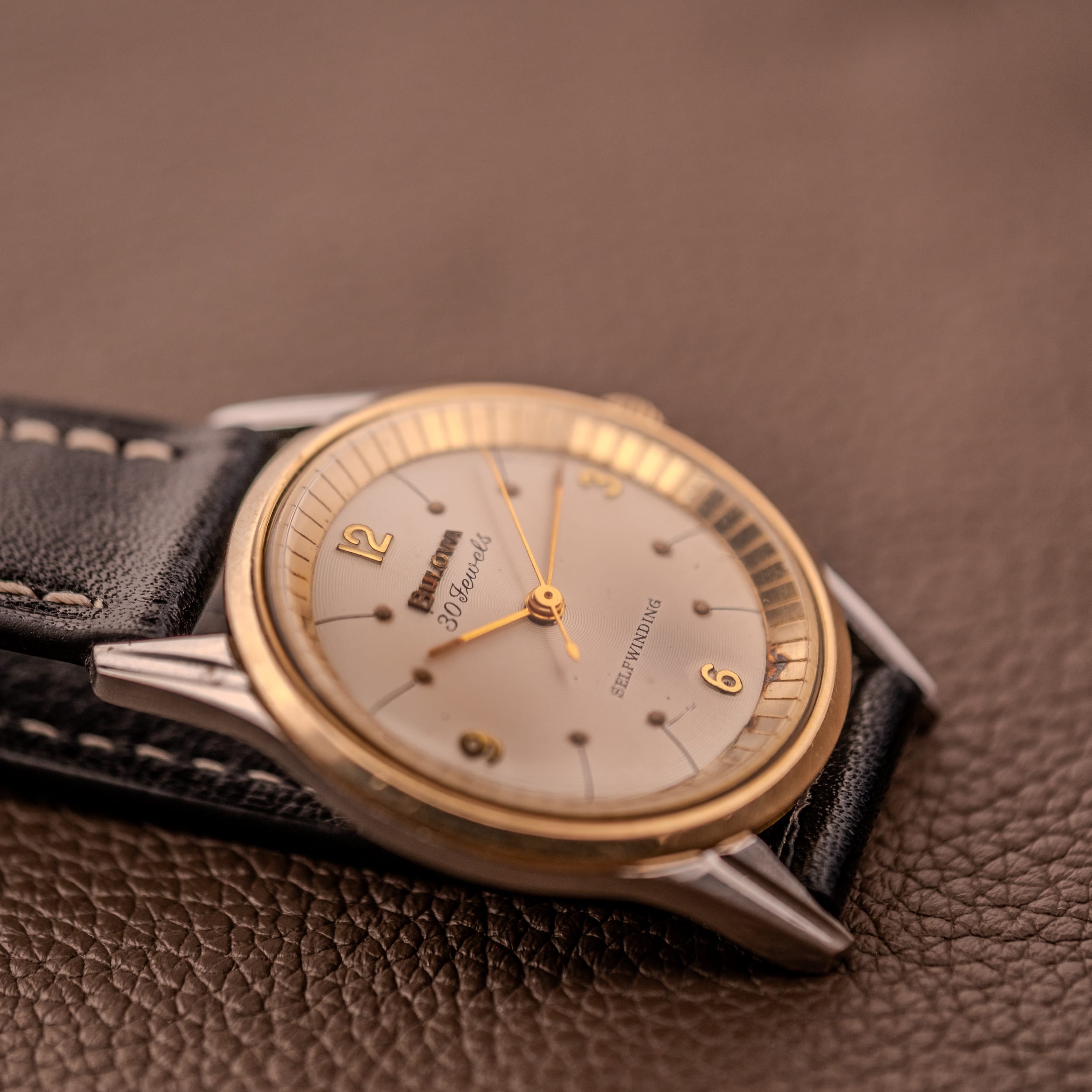 Not all Bulovas were created equal. In the late 1950s and early 1960s, the brand drew a deliberate line between its standard production and its premium offerings, and the clearest indicator of where a piece sat in that hierarchy was the jewel count printed on the dial. The 30-jewel selfwinding models represented the top of Bulova’s automatic range, and the company made sure you knew it, not just through the movement specification but through a fundamentally different case construction reserved exclusively for these higher-spec references.