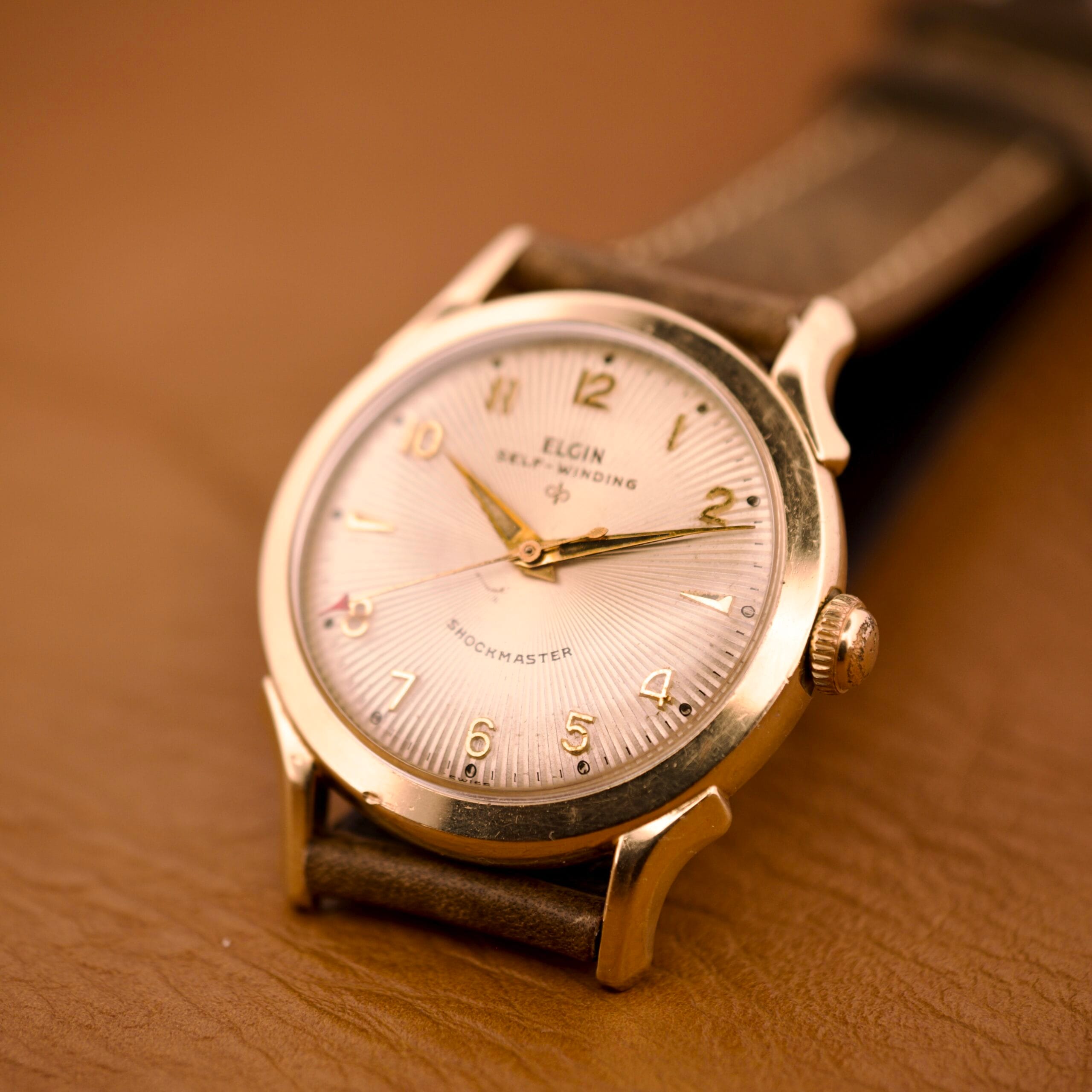 In the 1950s, the American watch industry was fighting to maintain its dominance against the Swiss, and Elgin was leading the charge. The “Shock-Master” line was their answer to the active, modern lifestyle of the post-war boom. It wasn’t just a dress watch; it was advertised as a watch that could take a hit and keep on ticking, thanks to improved shock protection on the balance staff. This particular model captures that sweet spot where rugged utility meets “country club” elegance. It represents a time when American watchmaking was synonymous with both innovation and style, offering a homegrown alternative to the Omegas and Longines of the world.