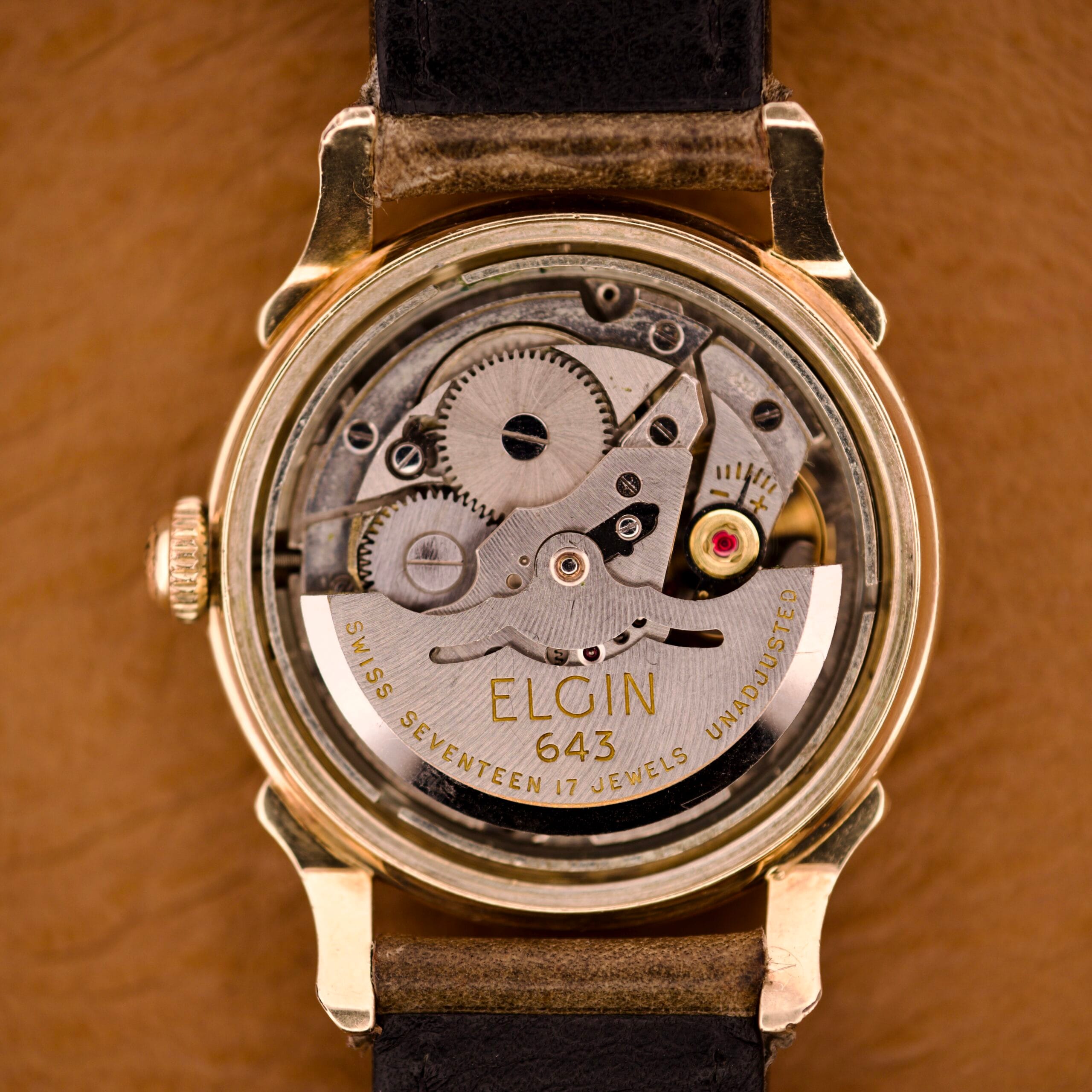The real headline here is the dial. In an age of plain silver faces, a guilloché (or textured) dial was a mark of luxury. Whether it presents as a honeycomb, waffle, or concentric ridge pattern, this texturing adds a depth and richness to the watch that catches the light in fascinating ways. It turns the dial from a flat surface into a dynamic landscape. The Caliber 643 beating inside is a robust automatic movement, likely featuring Elgin’s “Durapower” mainspring, which was marketed as unbreakable, a significant technological brag at the time.