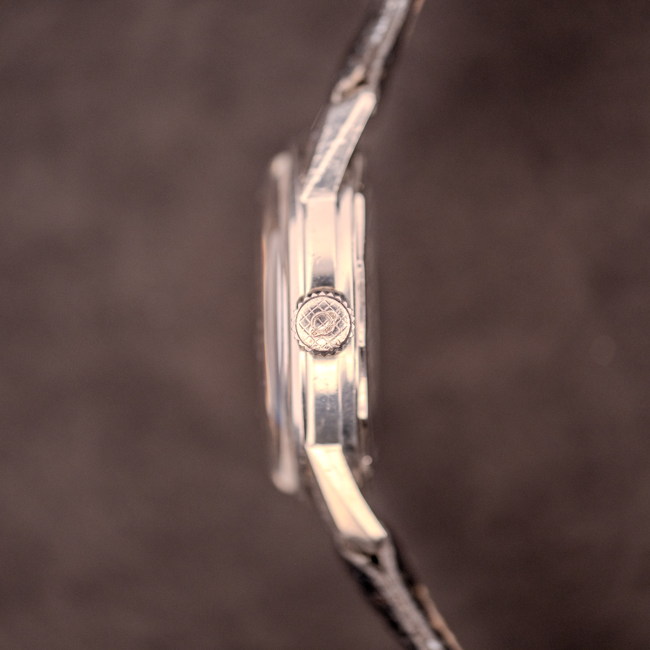 What makes this particular Seapearl 600 genuinely unusual is the movement inside. The vast majority of Sherpa Seapearl 600s house automatic calibers, which makes intuitive sense for a tool watch built to live on the wrist. This example contains the cal. AR 1140, Enicar’s in-house manual-wind movement. The “AR” designation stands for Ariste Racine, the Enicar founder, and if you have not already made the connection, “Enicar” is simply “Racine” spelled backwards. The AR 1140 is the base manual-wind caliber in the family, with the AR 1141 being its date-equipped sibling. Finding a manual-wind movement in a super compressor Seapearl 600 case is genuinely uncommon, and to us, it adds a layer of intrigue to an already compelling watch. The gilt-finished movement with its ruby jewels and “AR” stamp on the balance bridge is a lovely thing to look at, with 17 jewels and the kind of warm, copper-toned finishing that rewards close inspection.