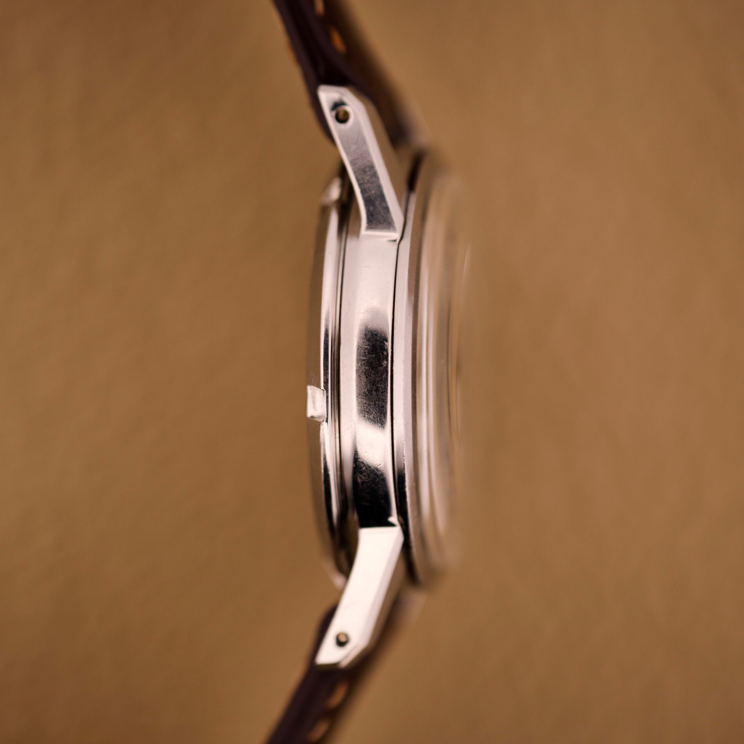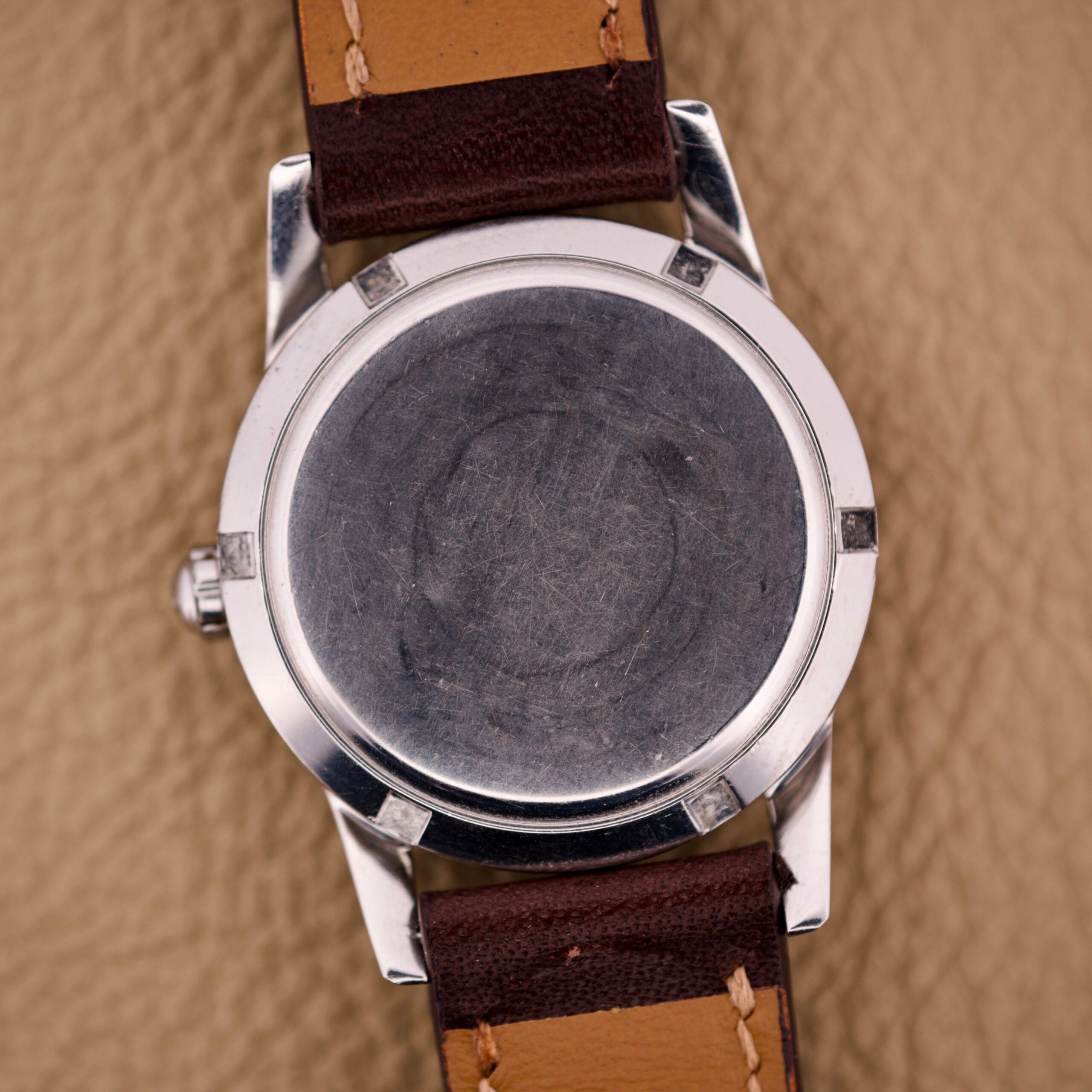 This particular example, a Reference 6678, is just dripping with 1950s charm. The stainless steel case is sharp and honest, but the dial is the real story. It features a fantastic and uncommon layout with applied Arabic numerals for the even hours and sharp, faceted arrowheads in between. This “explorer-style” configuration is highly sought after.