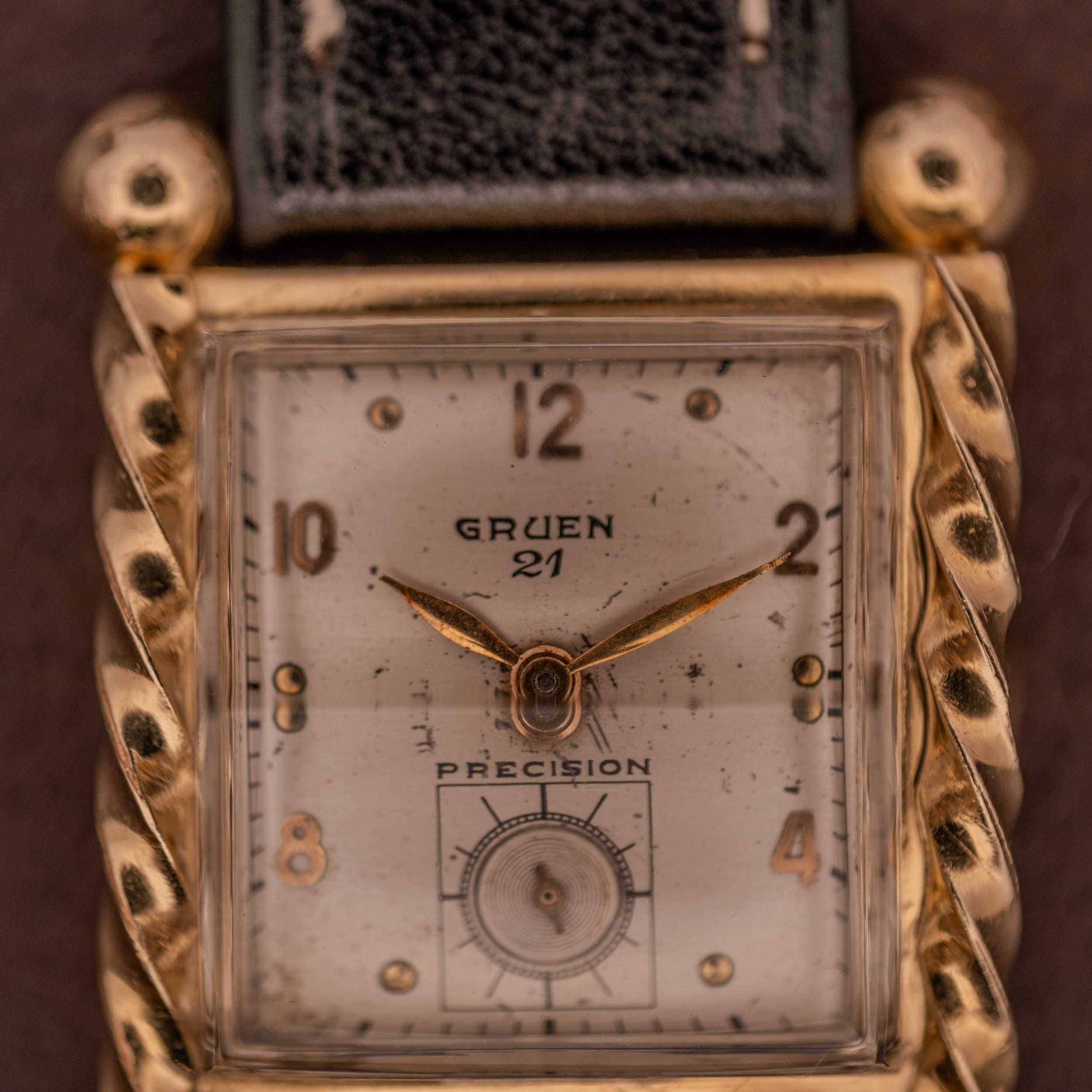 The “21 Precision” designation tells you this was a premium offering in the Gruen lineup. The “21” refers to the 21-jewel movement, a step above the standard 17-jewel calibers and a mark of quality that Gruen was clearly proud of, printing it right on the dial. These were hand-wound calibers of genuine refinement, and the “Precision” moniker was reserved for movements that met Gruen’s higher accuracy standards. It’s wild to think that this level of movement quality was being paired with case designs this expressive, a combination of serious horological substance and unabashed decorative flair that feels uniquely of its time.