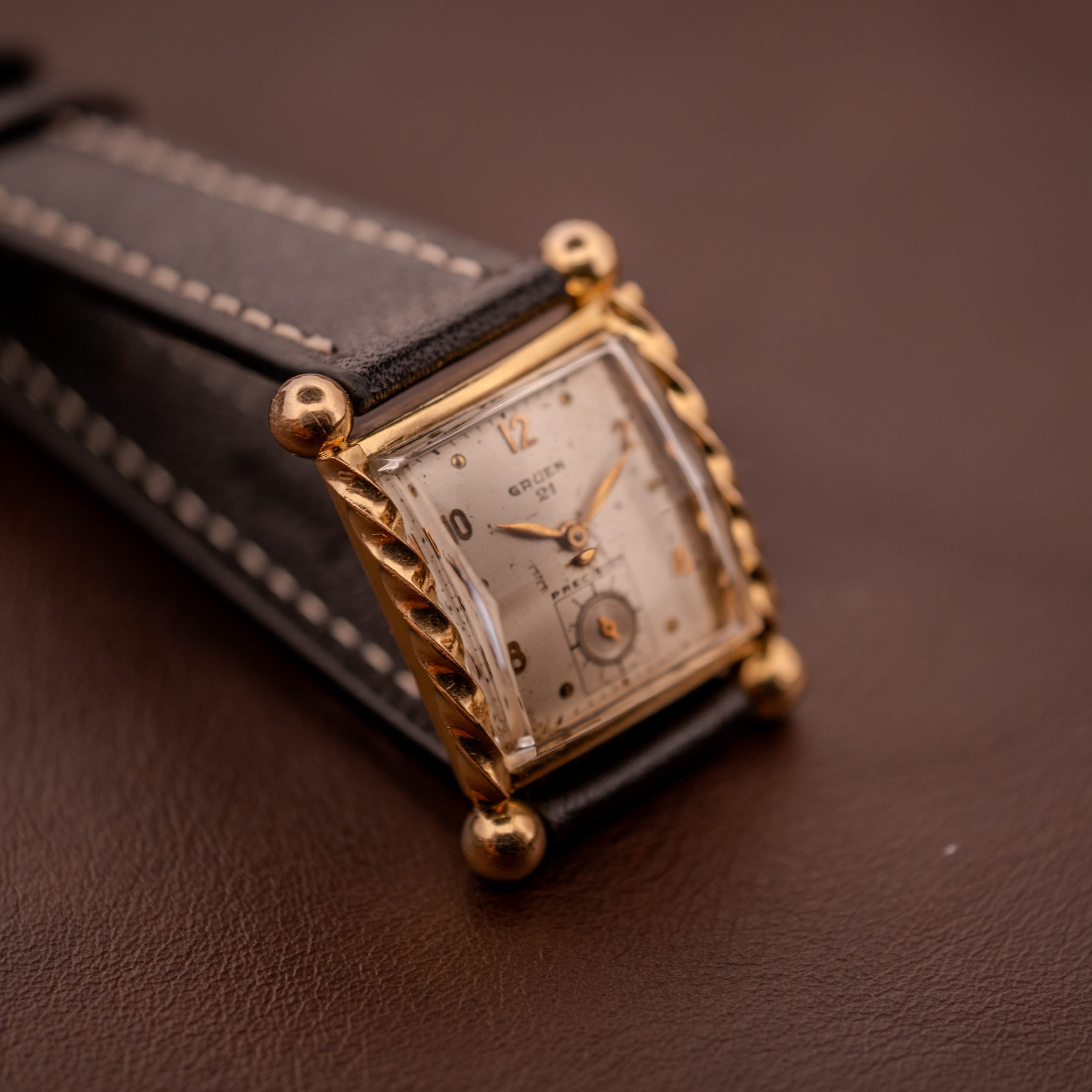 For the collector who appreciates watches as wearable art, as objects where design ambition and horological substance intersect in unexpected ways, this Gruen 21 Precision is an irresistible find. Paired here with a black leather strap with contrast stitching that lets the ornate gold case take center stage, it’s a piece that bridges the gap between fine jewelry and serious watchmaking in a way that very few brands ever attempted, and fewer still pulled off with this much panache. In today’s market, where collectors are increasingly drawn to distinctive, conversation-starting pieces with genuine heritage, a Gruen like this one represents not just a compelling value proposition but an opportunity to own something truly unique on the wrist.