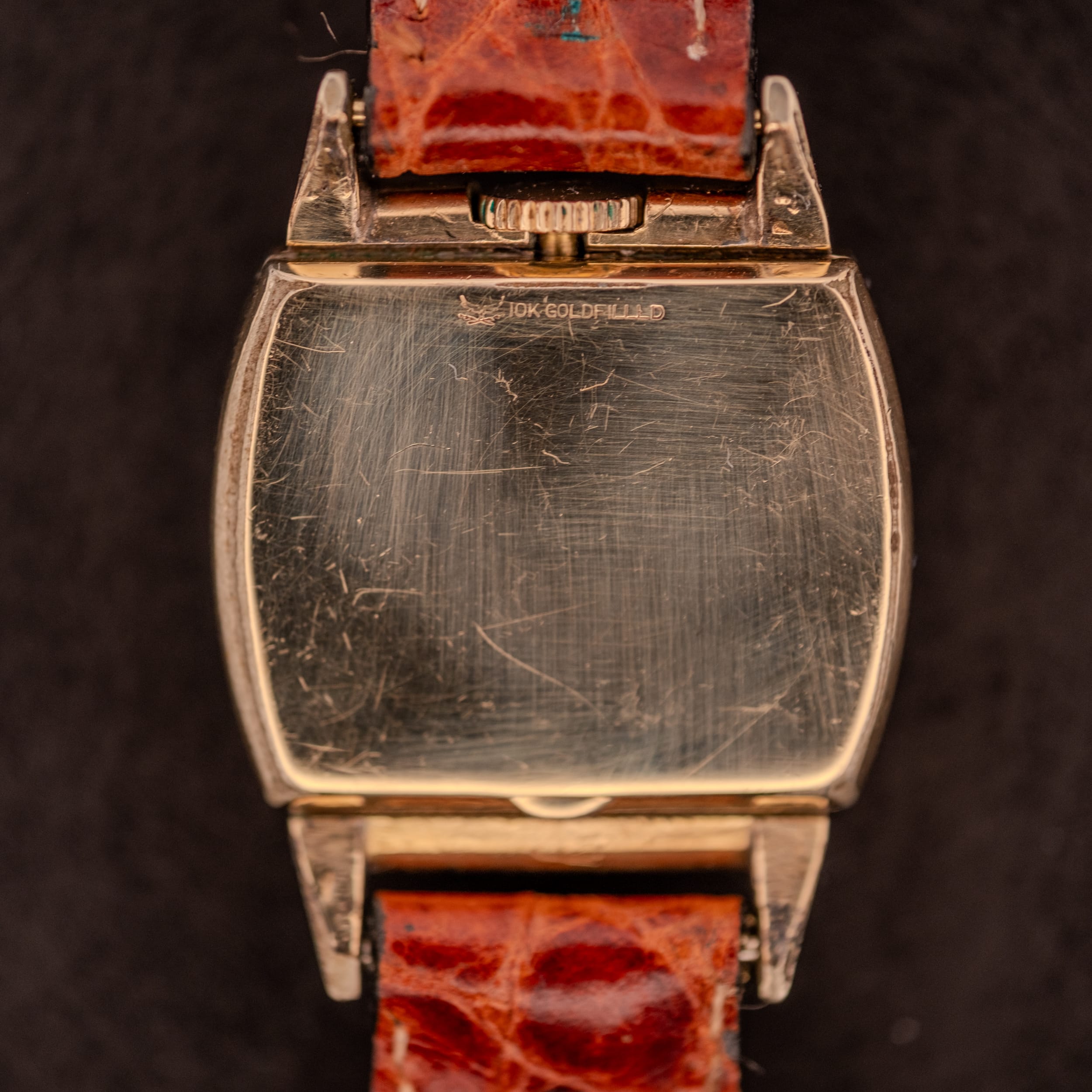 To us, the top crown configuration is the kind of detail that makes a collector stop and look twice. It transforms what would otherwise be a handsome but conventional 1940s dress watch into something genuinely distinctive, a conversation piece with real design logic behind it. Paired with the warm 10K gold filled Star Watch Case Co. case and that lovely aged dial, this is a piece that rewards close attention.