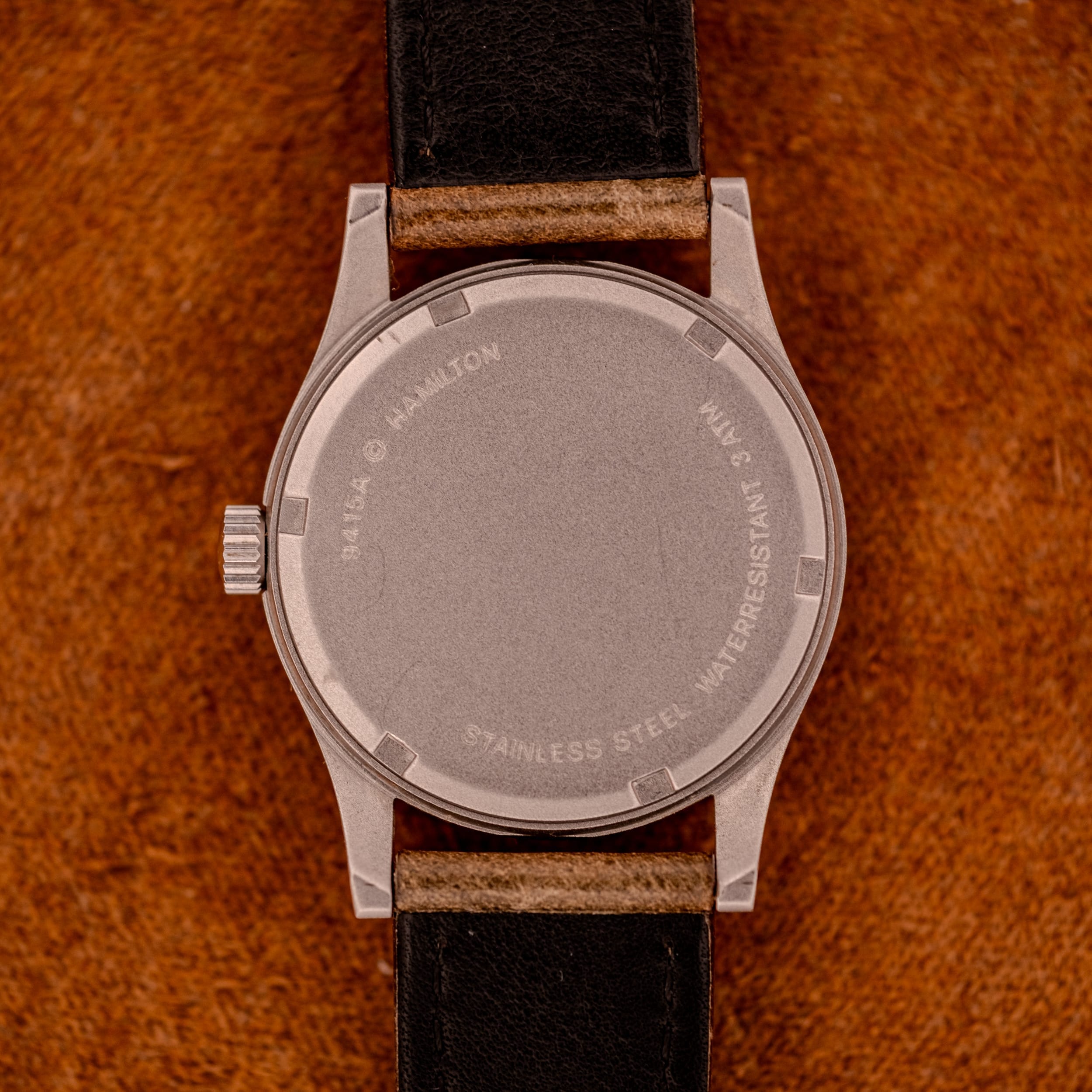 For the collector who appreciates watches with genuine military provenance, the Hamilton Khaki 9415A occupies a special place. It is the bridge between the actual government-issue field watches that served in combat and the modern Khaki Field Mechanical that Hamilton sells today, and in many ways it captures the best of both worlds: the authentic sizing, proportions, and dial design of the original military pieces, combined with the upgraded ETA 2801-2 movement and practical civilian refinements like drilled lugs and a hacking function. These 1990s-era Khakis are becoming increasingly collectible as enthusiasts recognize them as the truest civilian expression of Hamilton’s military DNA, produced before the modern reissue scaled up to 38mm and introduced contemporary materials. This is a field watch in its most honest, distilled form, and it wears with a confidence and authenticity that is impossible to fake.