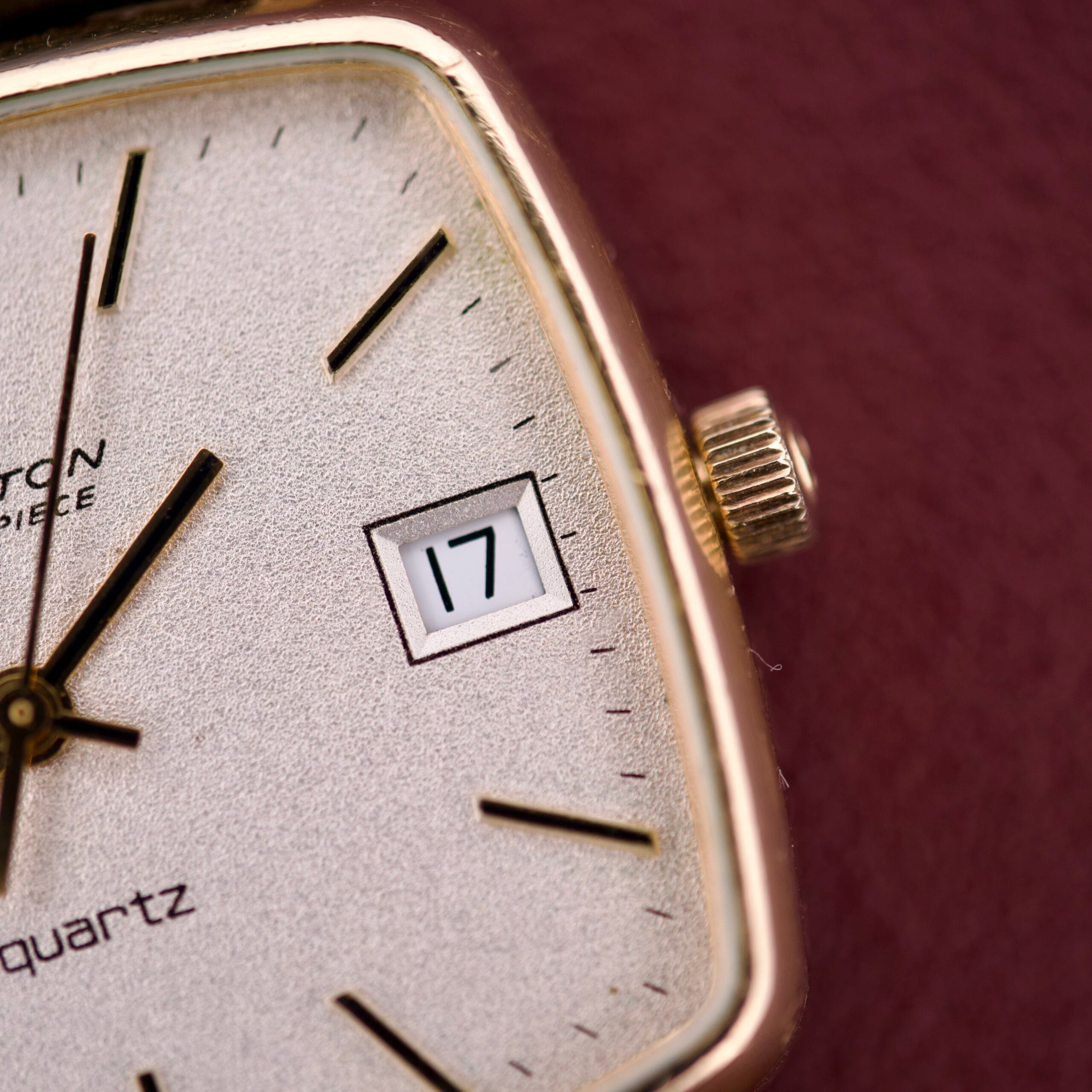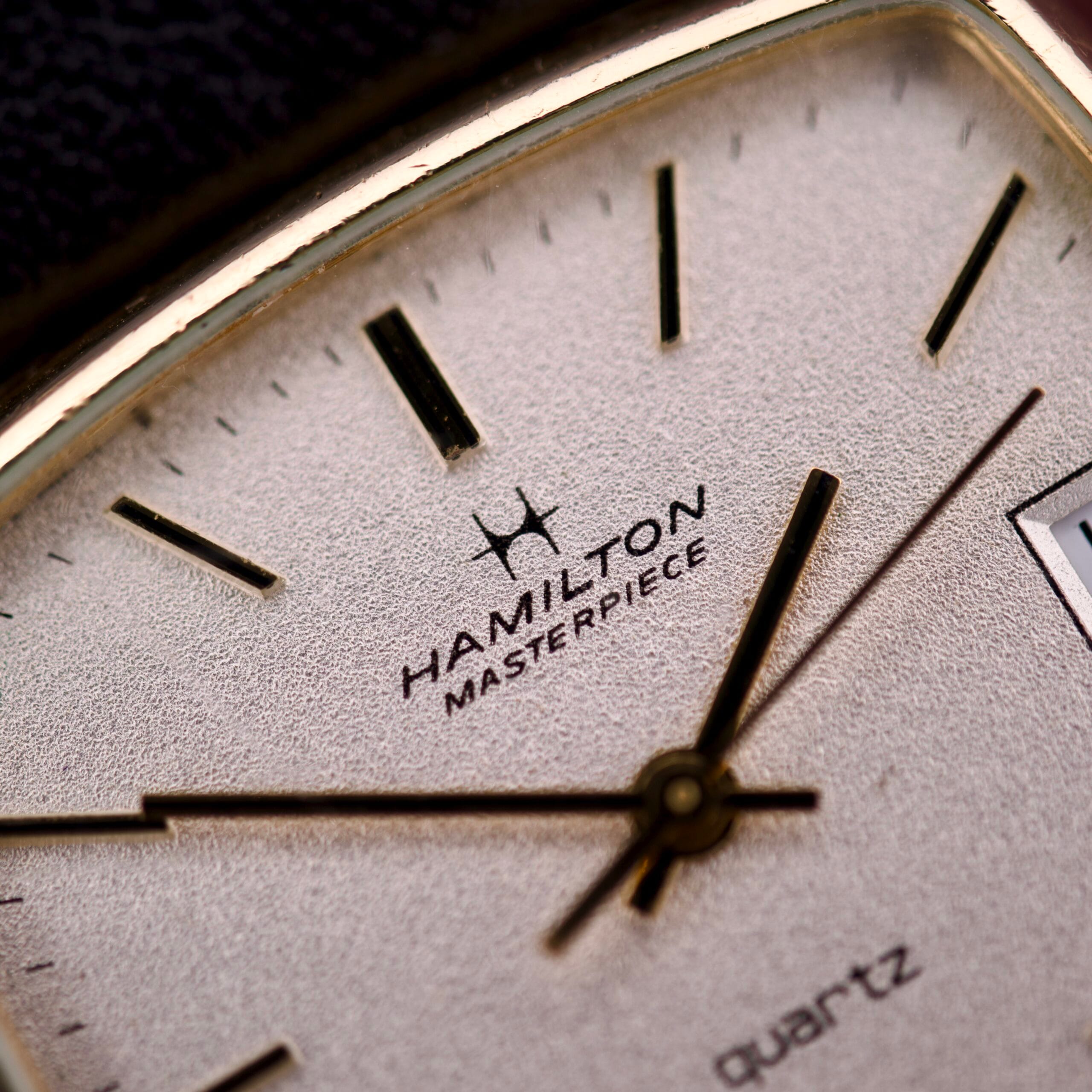 If you close your eyes and picture the archetypal “gold watch” given for 25 years of service at a major corporation in 1980, this is likely what you see. The Hamilton “Masterpiece” line was the brand’s premier collection for the corporate gift market (often used by companies like IBM, Ford, or DuPont). While these watches were born from corporate tradition, today they stand as fantastic style objects that perfectly encapsulate the transition from the mechanical mid-century to the quartz-powered modern era.