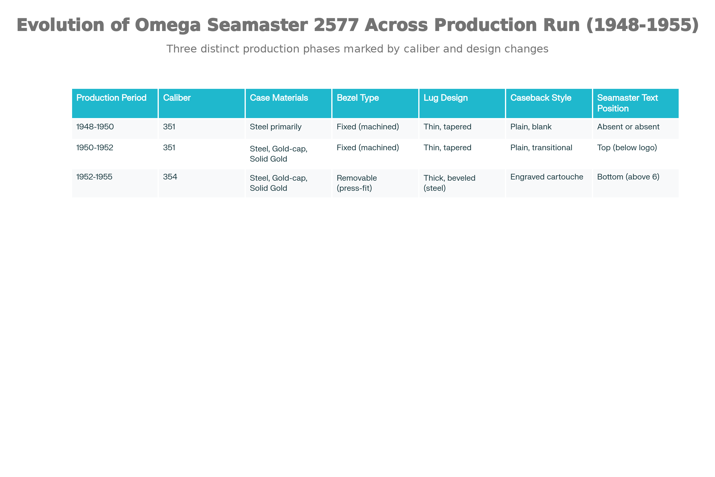 Evolution of Omega Seamaster 2577 Design Features by Production Period