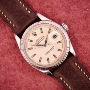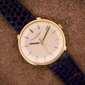 IWC Calatrava Jumbo Cal. 89 Stainless Steel featuring a stainless steel case with a fixed bezel. Original dial with applied indices and dauphine hands. Powered by the manual wind IWC Caliber 89. Round case design with a signed crown. Fitted with a leather strap and a buckle closure.