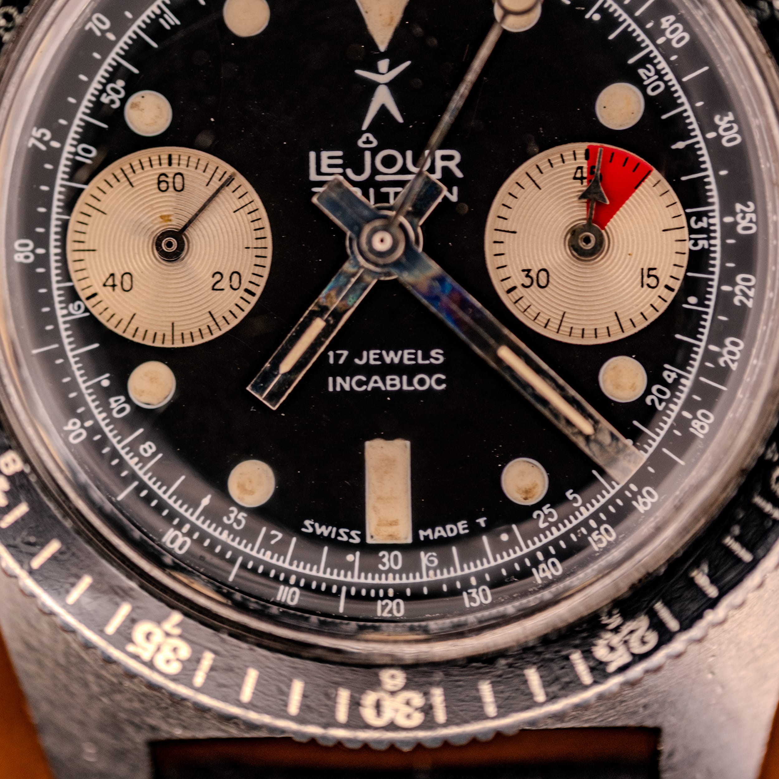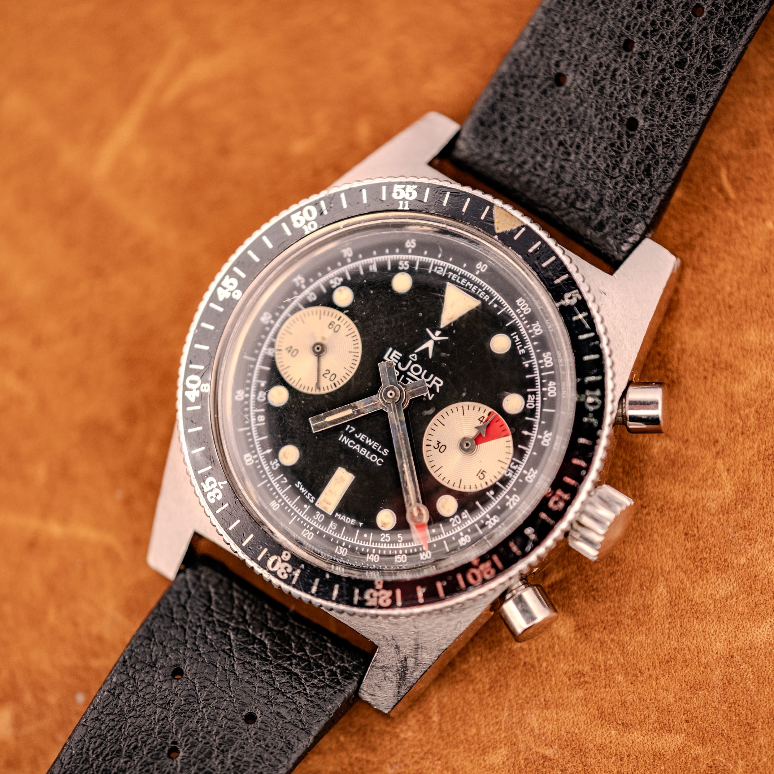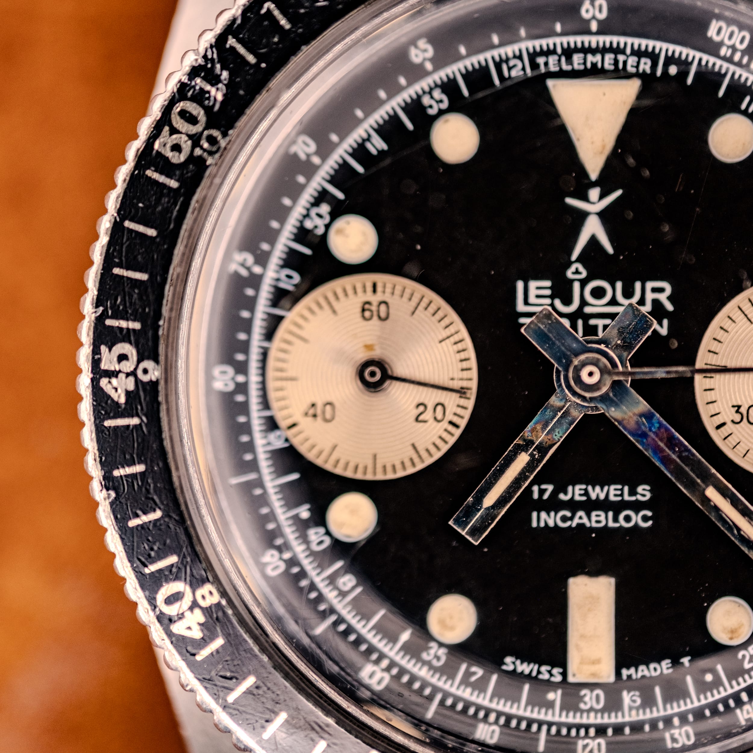 The 1960s produced an extraordinary number of dive chronographs from brands large and small, but few of them achieved the sheer visual impact of the Le Jour Triton. Le Jour began life as a French watch distributor in the 1960s with deep ties to both Yema and Heuer, acting as a conduit that brought Swiss-made chronographs to broader markets under its own name. The relationship with these major houses meant that Le Jour watches were not generic private-label products but rather purpose-built tools assembled from the best available Swiss components, housed in well-engineered cases, and fitted with dials that could hold their own against anything from the bigger names. The Triton was Le Jour’s dive chronograph, and in terms of pure wrist presence and functional design, it stands comfortably alongside the Heuer Autavias and Zodiac Sea-Chrons of the same era.