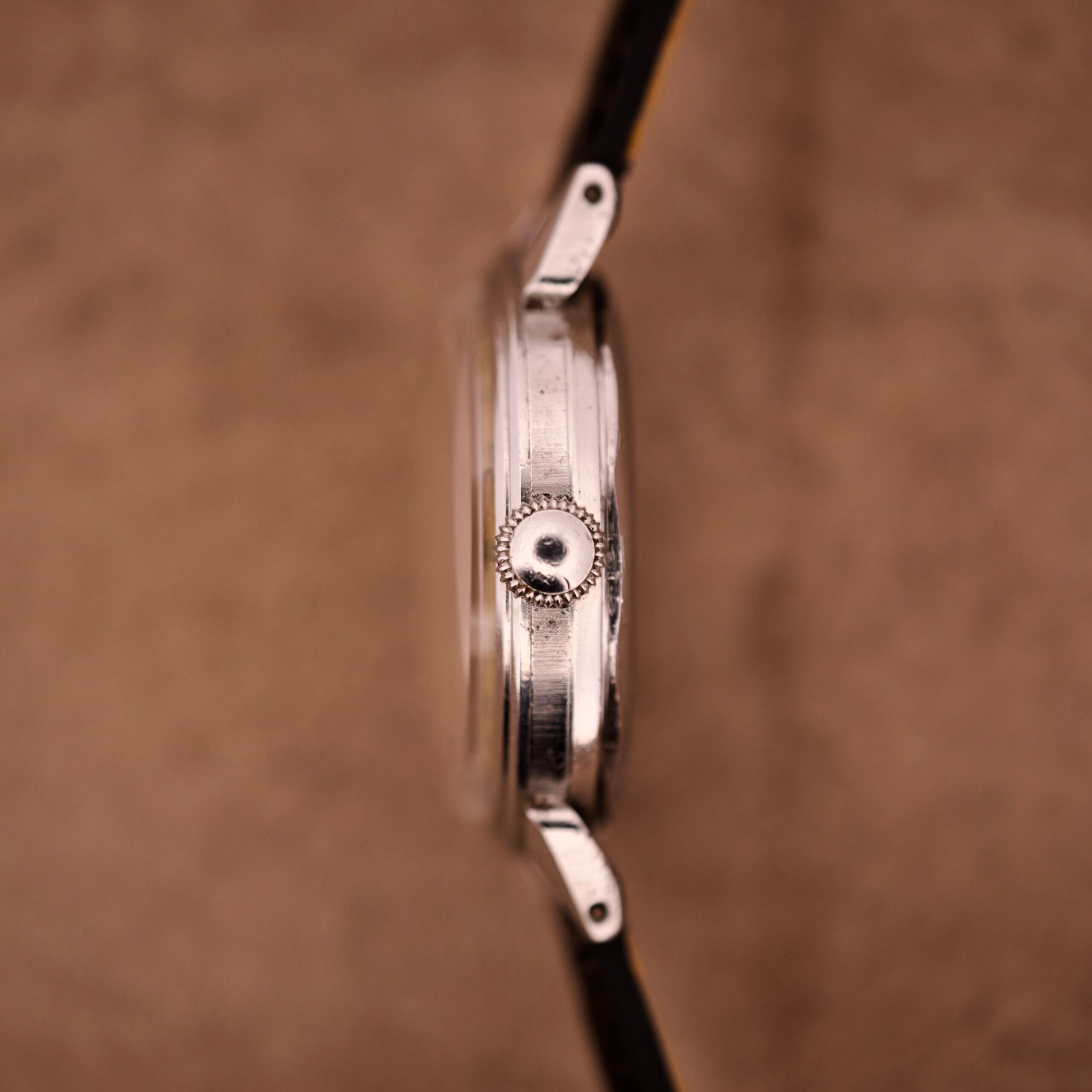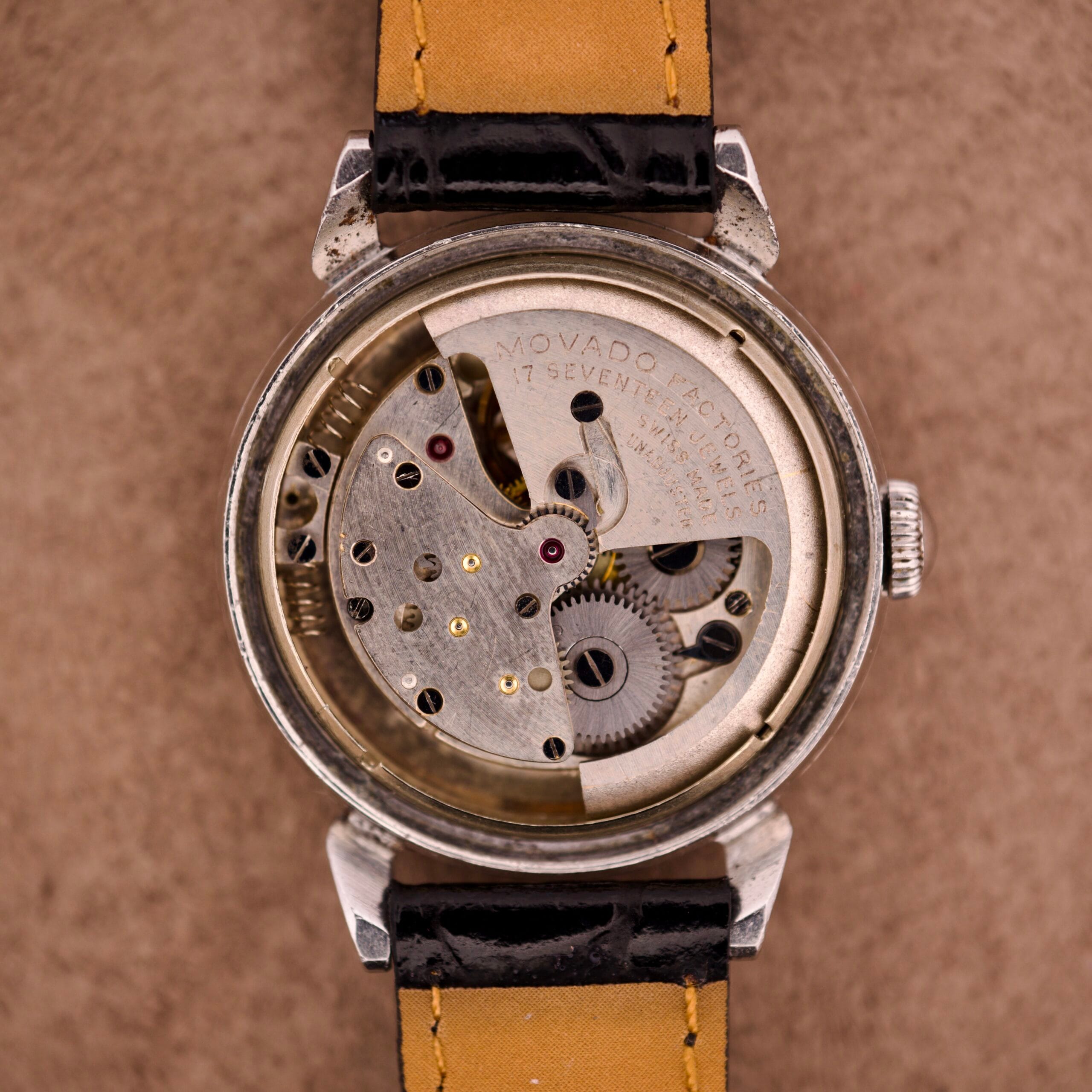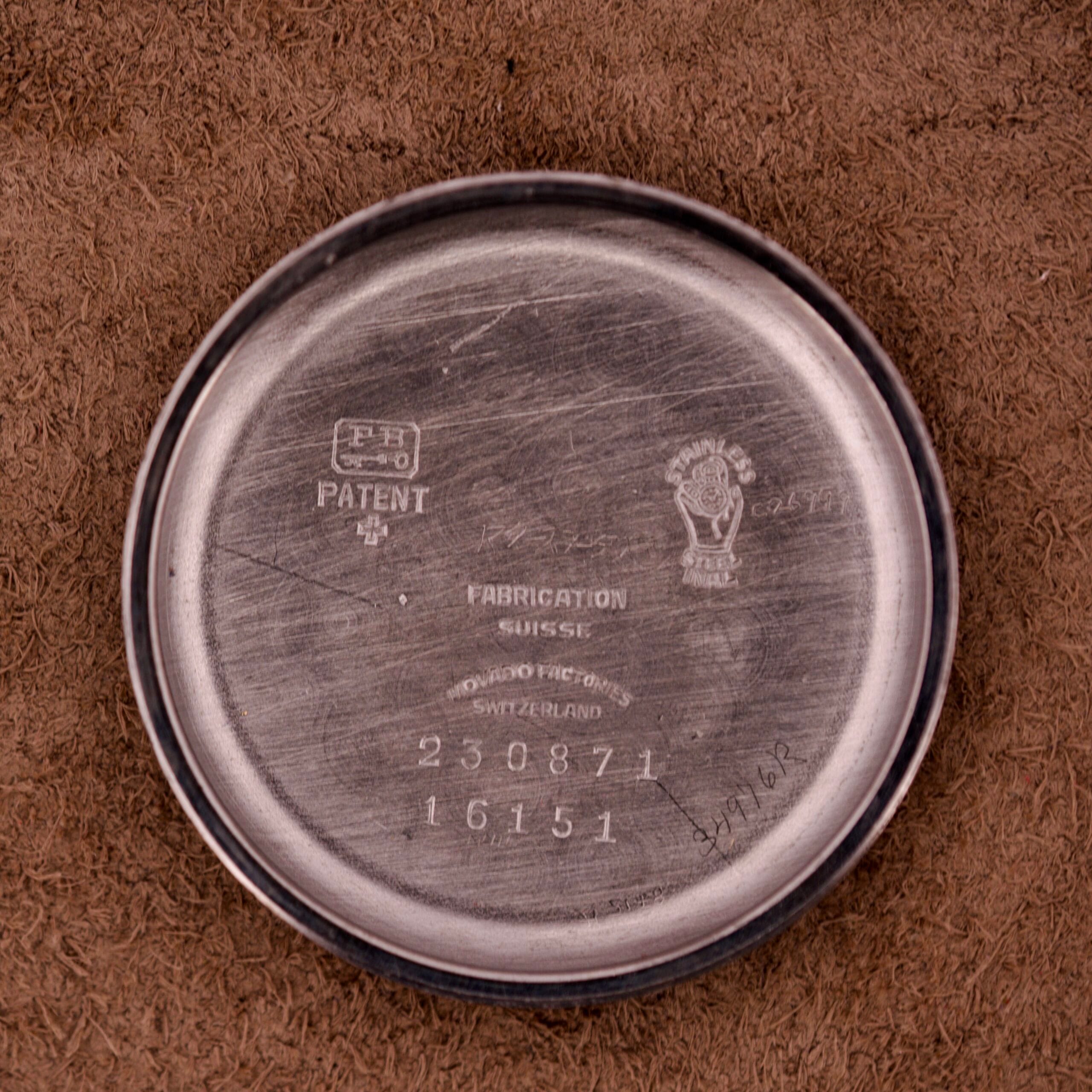 This watch hails from the early 1950s, the dawn of the self-winding era. The engine inside is a high-grade, 17-jewel Movado “bumper” automatic. This was the first generation of automatics, where a weighted mass swings in a limited arc, “bumping” off springs. It’s a charming and tactile piece of history, and you can feel its operation on your wrist. Even more importantly, the high-quality stainless steel case was made by François Borgel (FB). This is the same legendary casemaker that supplied Patek Philippe with their iconic waterproof Calatrava cases. It’s a sign of ultimate, no-compromise quality.