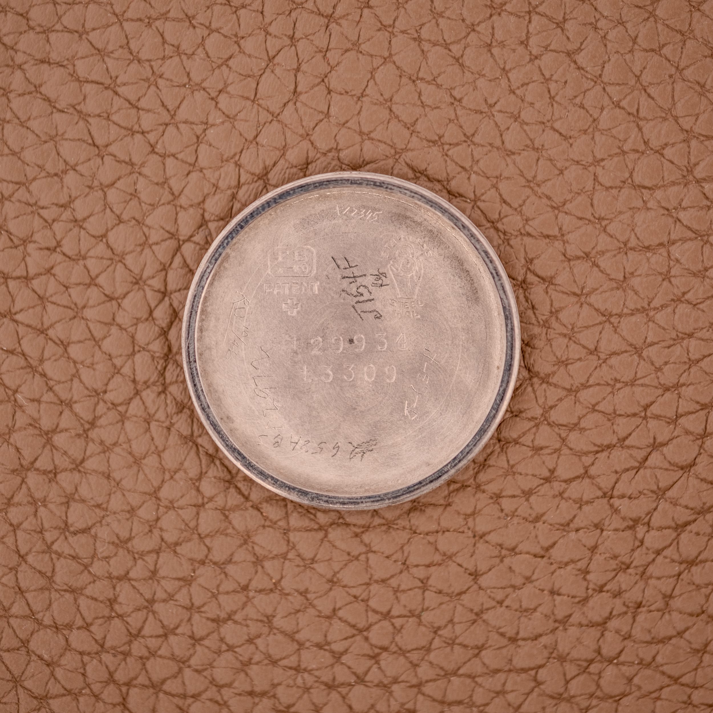 The case on this example tells a story of Swiss craftsmanship at its finest. It is a François Borgel construction, identifiable by the FB patent stamp visible on the inner caseback alongside “Acier Staybrite,” ref. 13309, and serial 129934. François Borgel was the legendary Genevan case maker who patented a screw-in case construction that became the gold standard for water-resistant watchmaking in the early twentieth century, and his cases were used by the finest Swiss houses of the period. The 14K rose gold cap over the steel back creates a warm, luxurious presence on the wrist, and the stepped bezel adds architectural dimension that catches light beautifully. The faceted lugs are classic 1940s Movado, angular and purposeful, giving the watch a sense of structure that balances perfectly against the warmth of the rose gold.