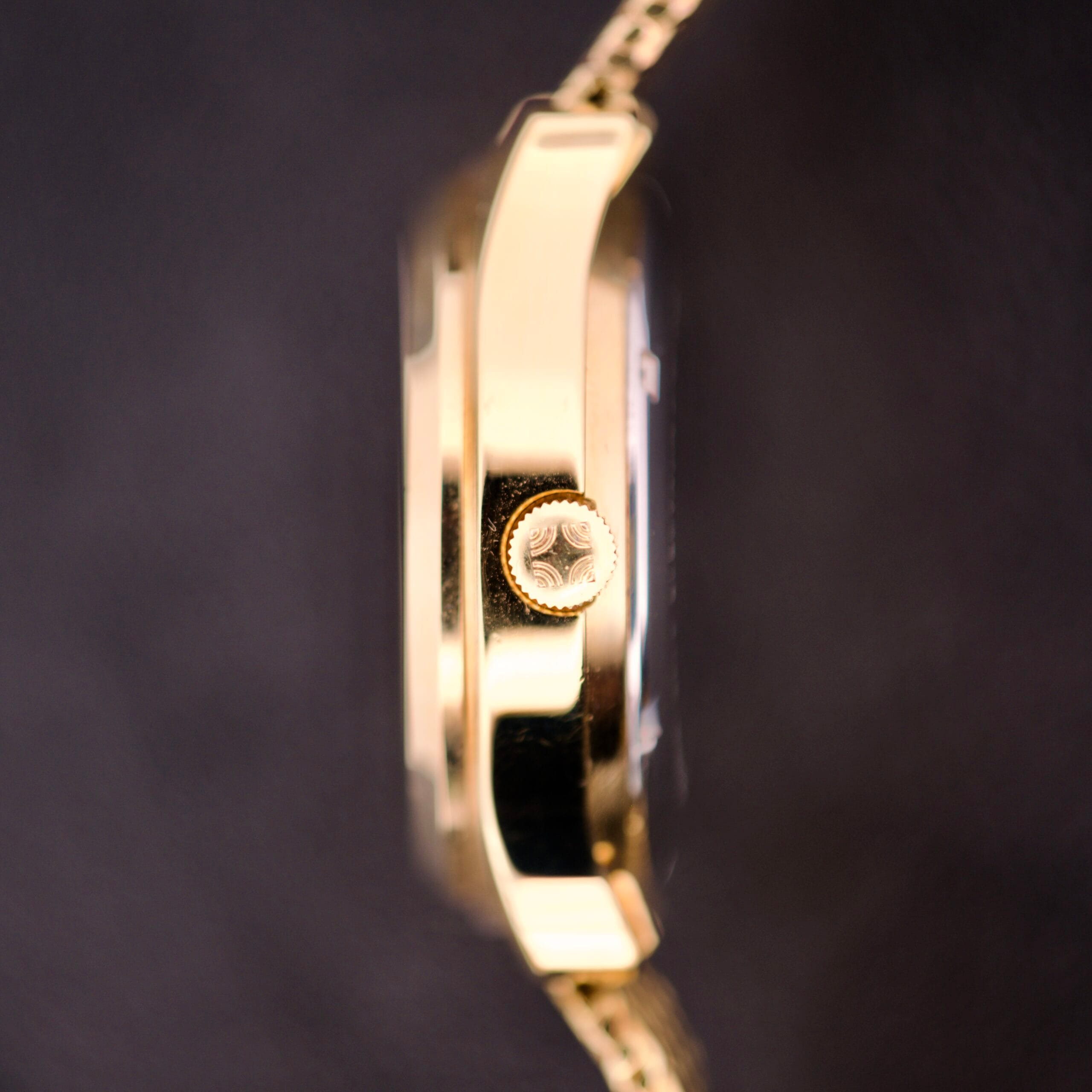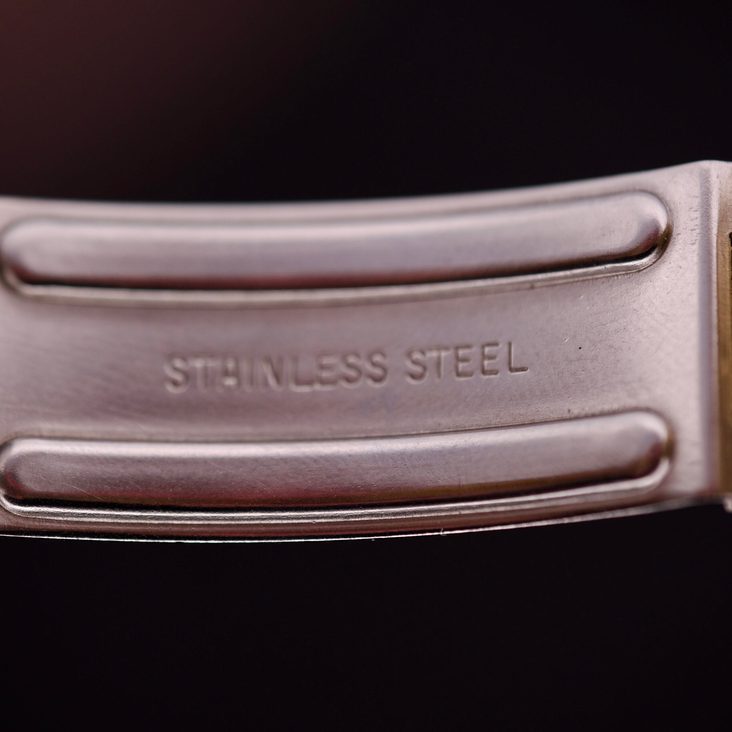 Inside this watch is the Zenith Caliber 50.5, a premium, Swiss-made tuning fork movement (a Zenith-branded version of the legendary ESA 9164). This is a “hummer.” Instead of a balance wheel, it uses an electronically powered tuning fork that vibrates at 300Hz, giving the seconds hand a perfectly smooth, silent sweep that was pure science fiction in the 1970s.