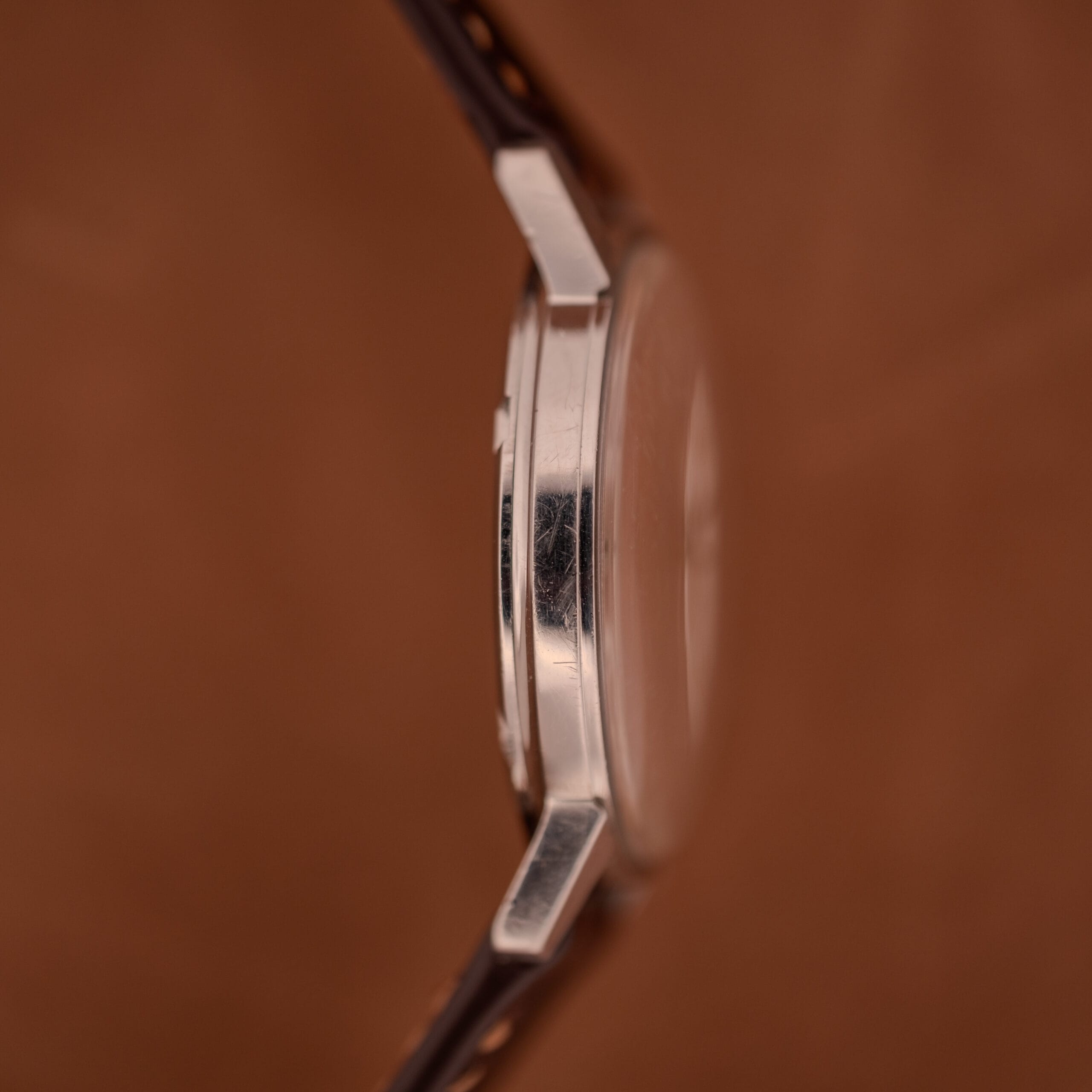 Condition is always the deciding factor with these dress-casual pieces, and this example presents beautifully. The stainless steel case retains its sharp lines, particularly on the lugs, avoiding the softened edges that come from over-polishing. The movement is bright and clean, bearing the serial number 26 million, which confirms its 1968 production date. It is a watch that feels honest, worn but well-cared-for, possessing the kind of character that only comes from decades of existence.