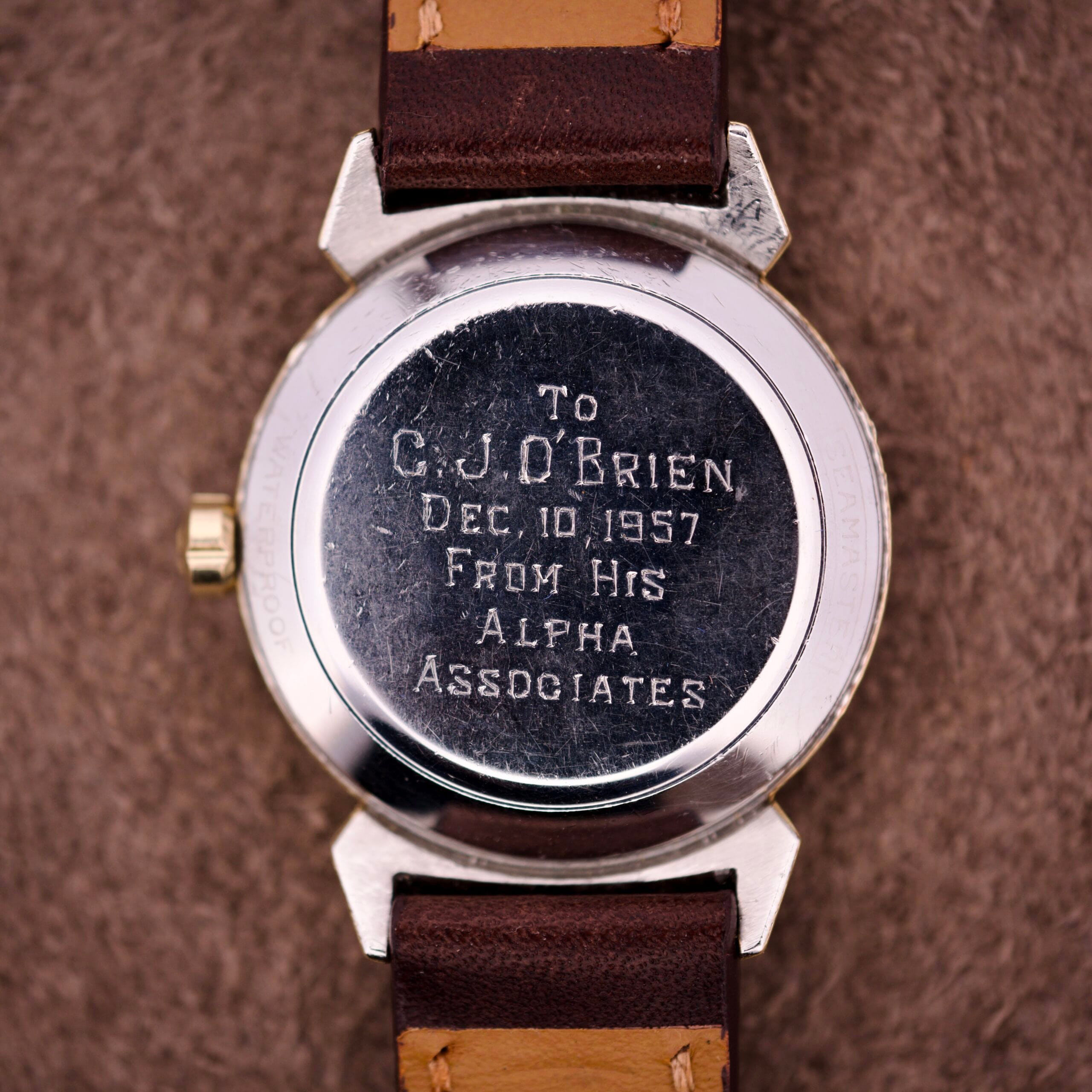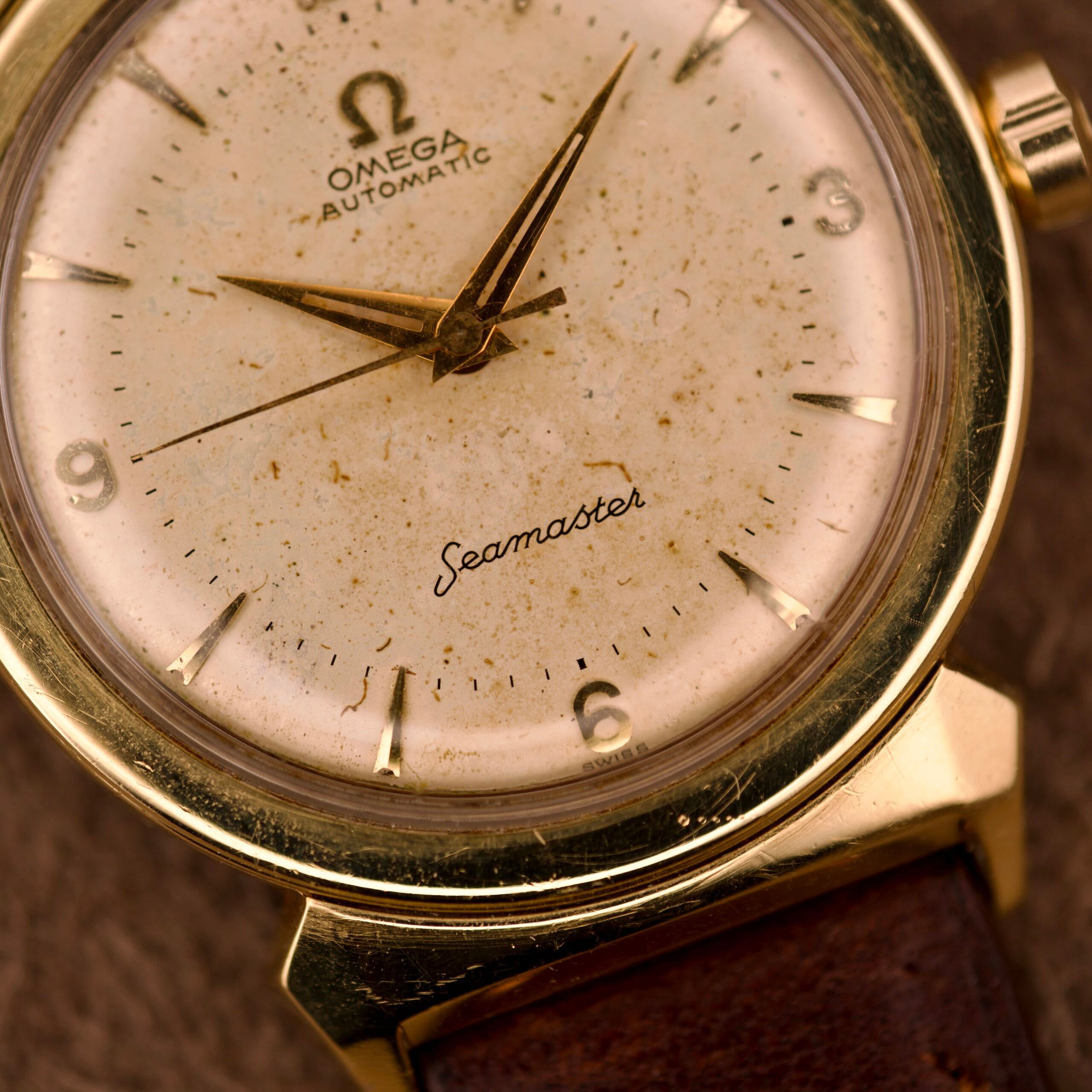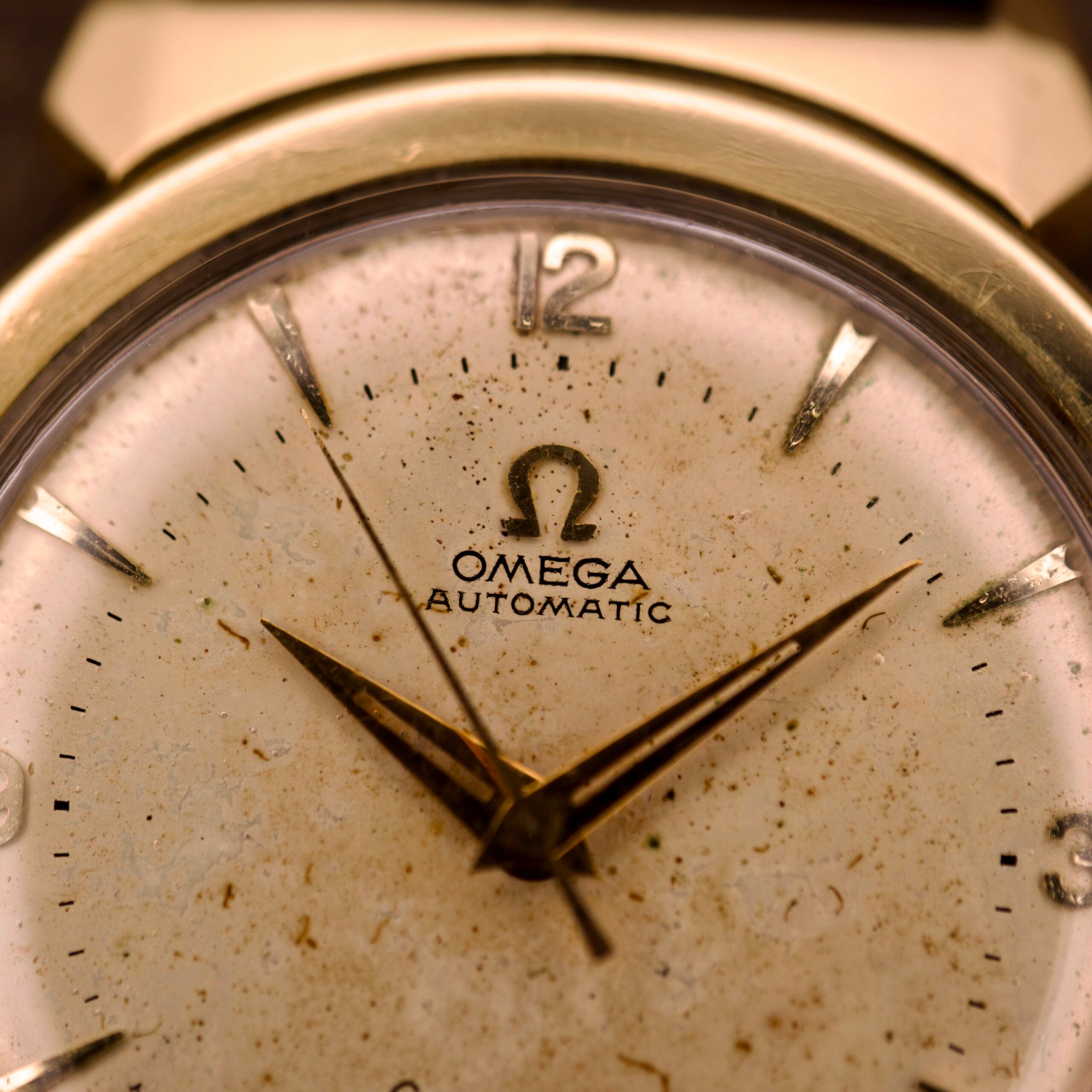 The late 1950s were a transitional period for Omega, moving from the earlier bumper automatics to the full-rotor 500-series calibers, which are widely regarded as some of the finest mass-produced movements ever made. This watch utilizes a “gold cap” construction, a far superior technique to standard gold plating, where a thick shell of 14k gold is mechanically bonded to a stainless steel core. This results in a case that has the visual warmth and heft of solid gold but with the durability of steel, designed to withstand decades of wear without wearing through to the base metal.
