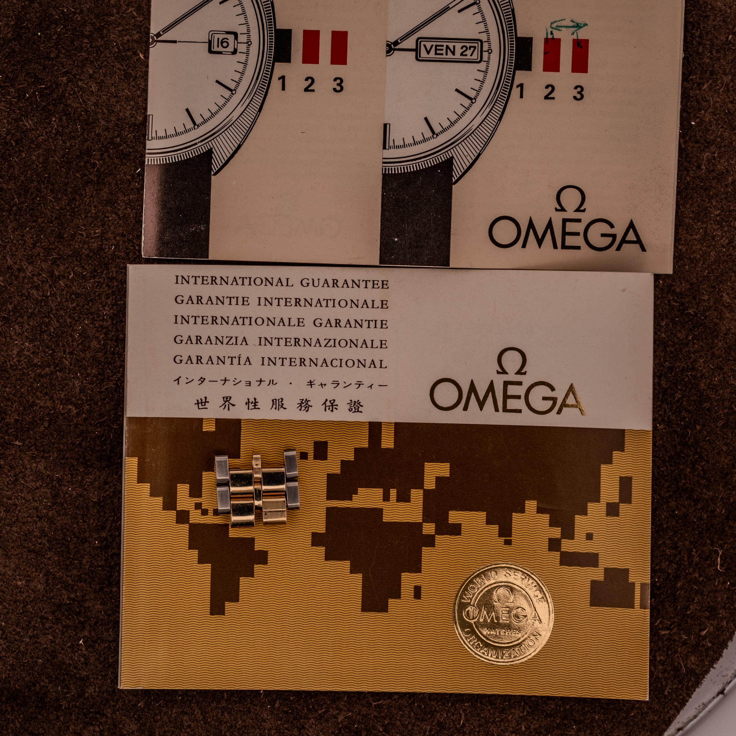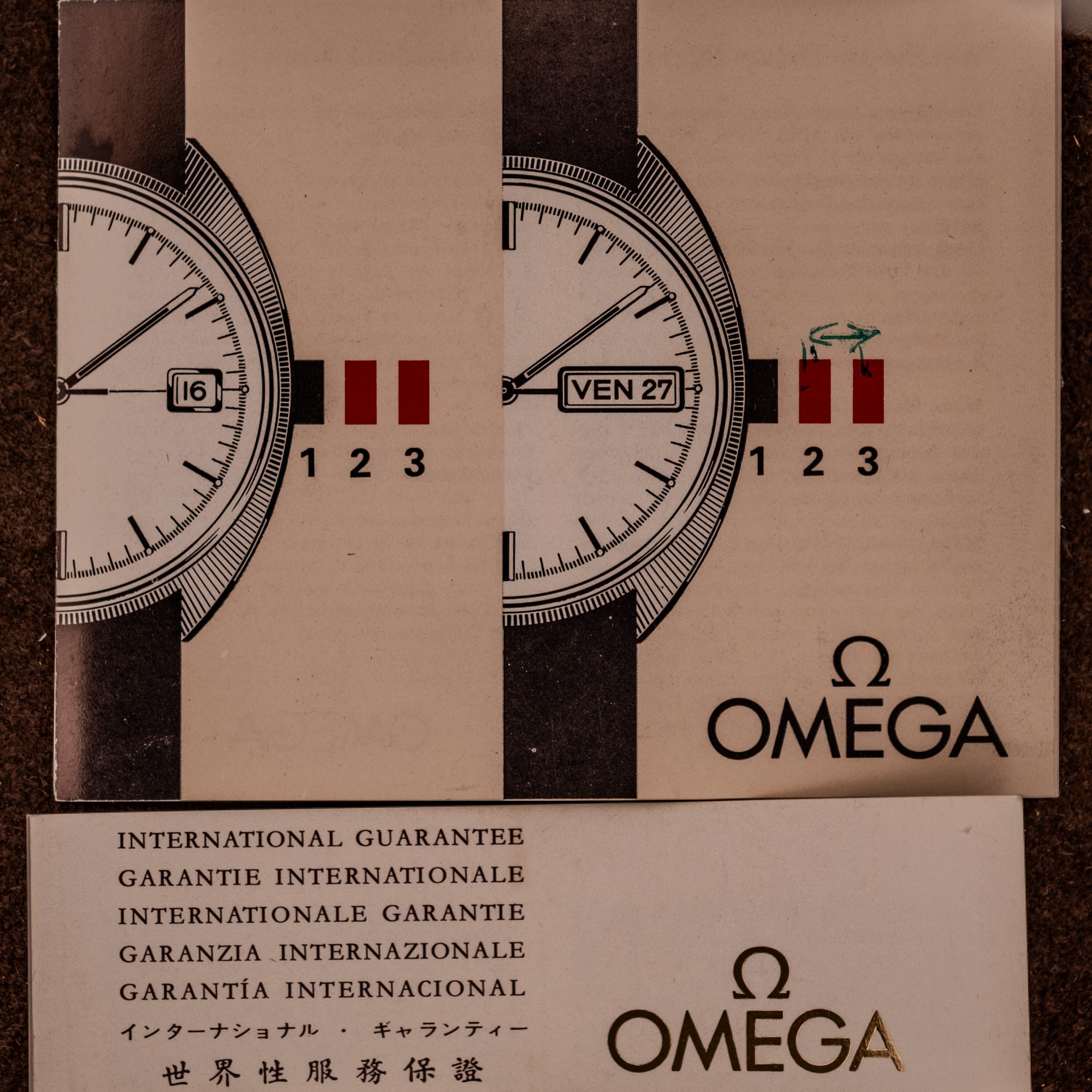 What truly sets this watch apart, however, is the completeness of the set. The original Omega presentation box is present and in wonderful condition, as is the international guarantee card, which has been filled out by hand and records the sale to a “Stryker” by “Schreibman” jeweler in Cleveland, Ohio, in 1973. The original instruction booklets for the day-date setting functions are also included. Finding a Constellation 168.045 in this condition is uncommon enough; finding one as a full set with original papers, box, booklets, and extra links is genuinely rare.