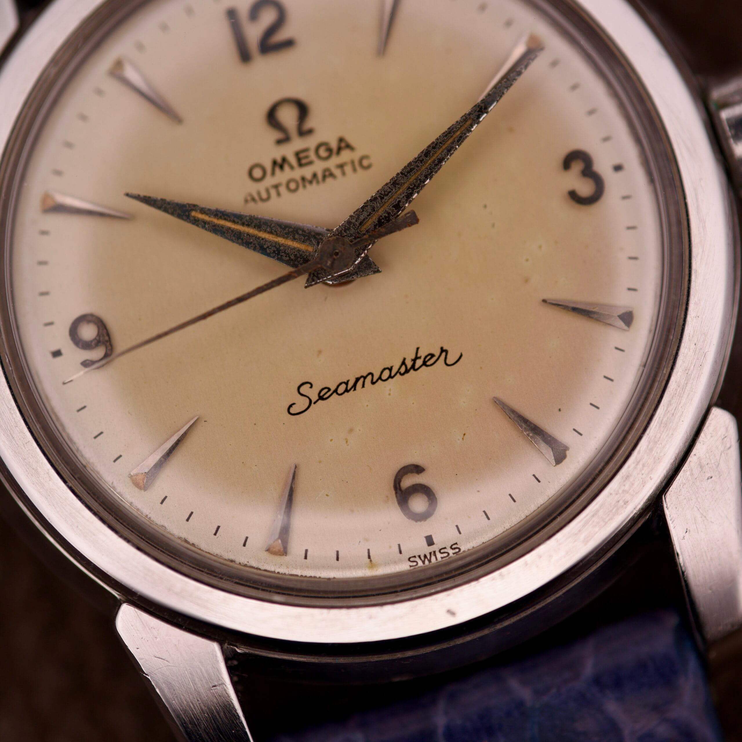 This particular example, a Reference 2828, is a fantastic expression of that era. The 34mm stainless steel case wears larger than its numbers suggest, thanks to its wonderfully thick and sharp “beefy” lugs, a highly sought-after case variant. But the dial is the main event. It features the desirable “Explorer-style” layout, with applied Arabic numerals at 3, 6, 9, and 12. This configuration, paired with the elegant “Seamaster” script at 6 o’clock, is one of the most balanced and beloved designs of the period.