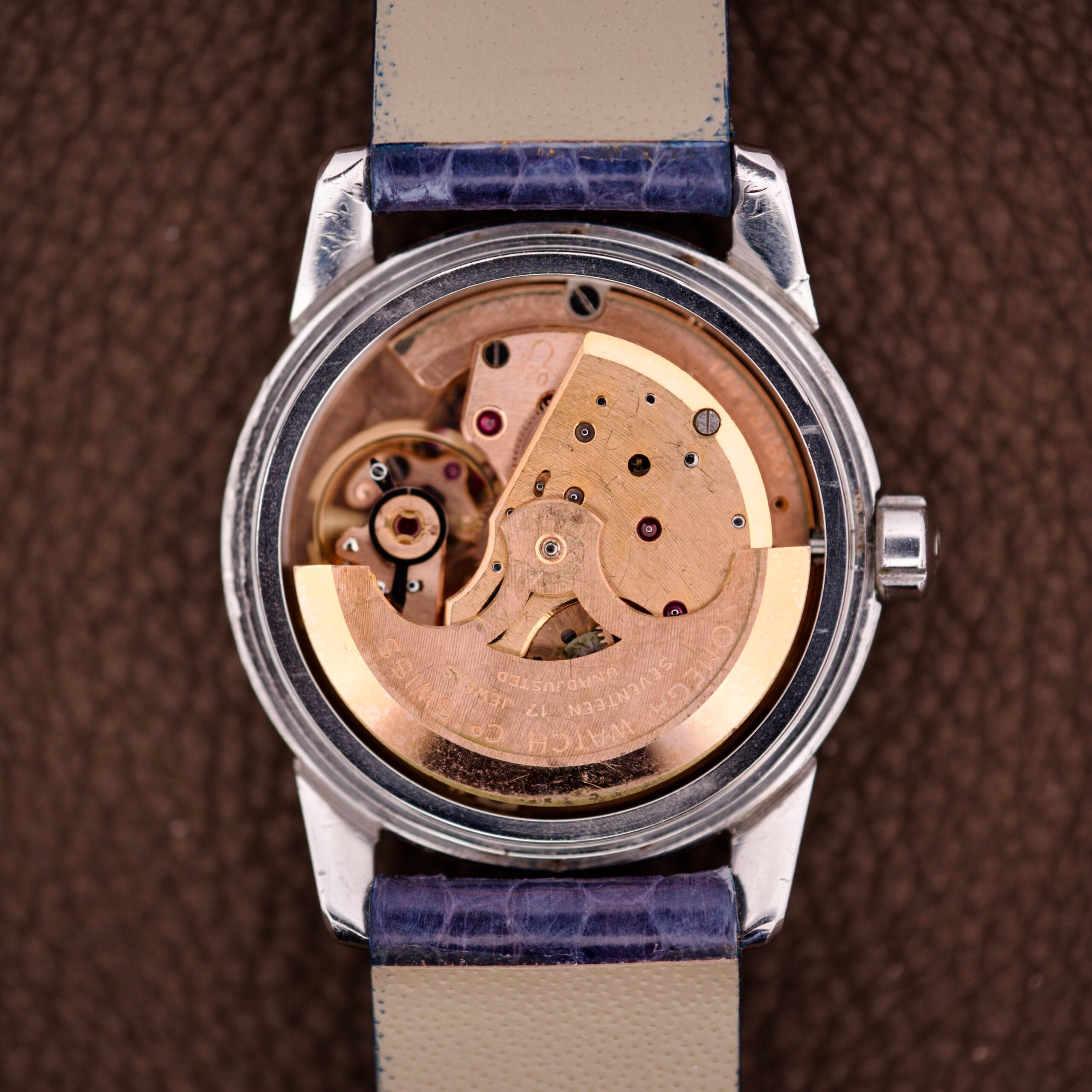 This watch hails from the mid-1950s, a white-hot period of innovation in watchmaking. The race was on to perfect the automatic, self-winding movement. This Seamaster is powered by the legendary Caliber 470. This wasn’t just an automatic; it was part of Omega’s very first family of in-house, full-rotor movements (the 47x series). This was the engine that truly set the standard for Omega’s reputation, replacing the charming but less efficient “bumper” movements and establishing the architecture that would dominate for decades. It’s a robust, beautifully copper-gilt finished workhorse.