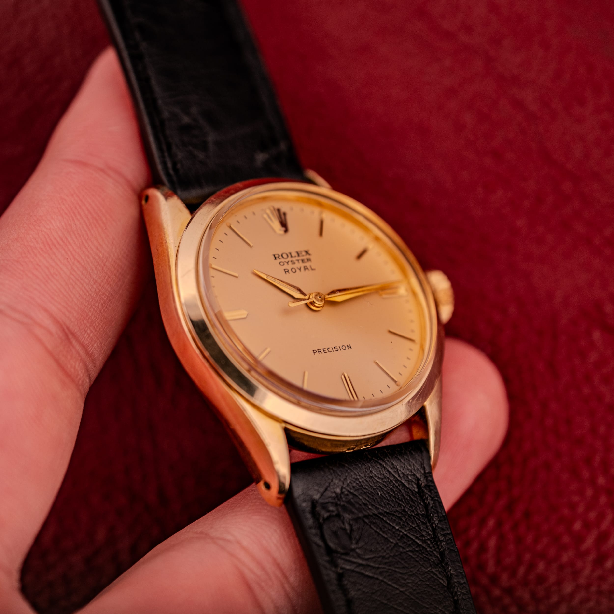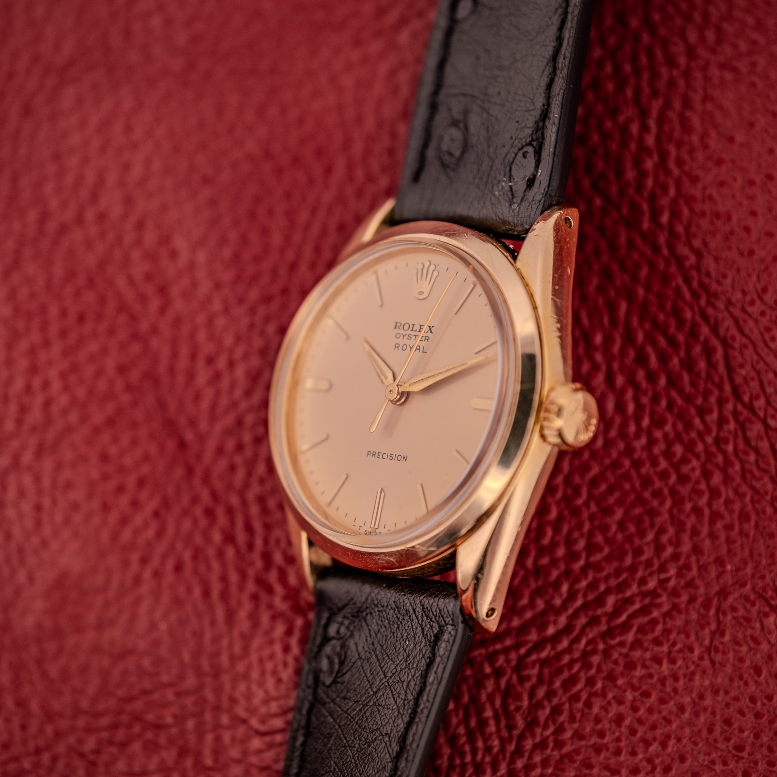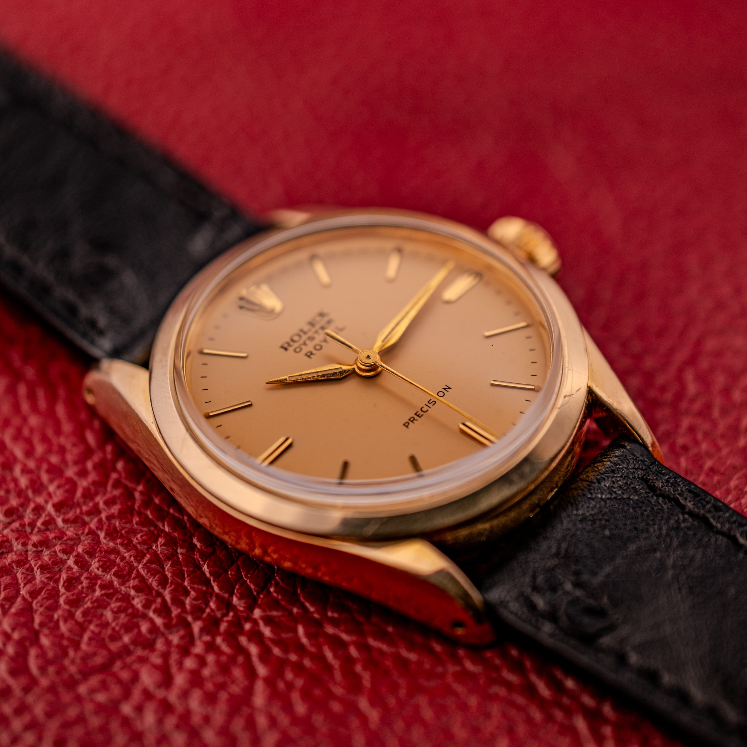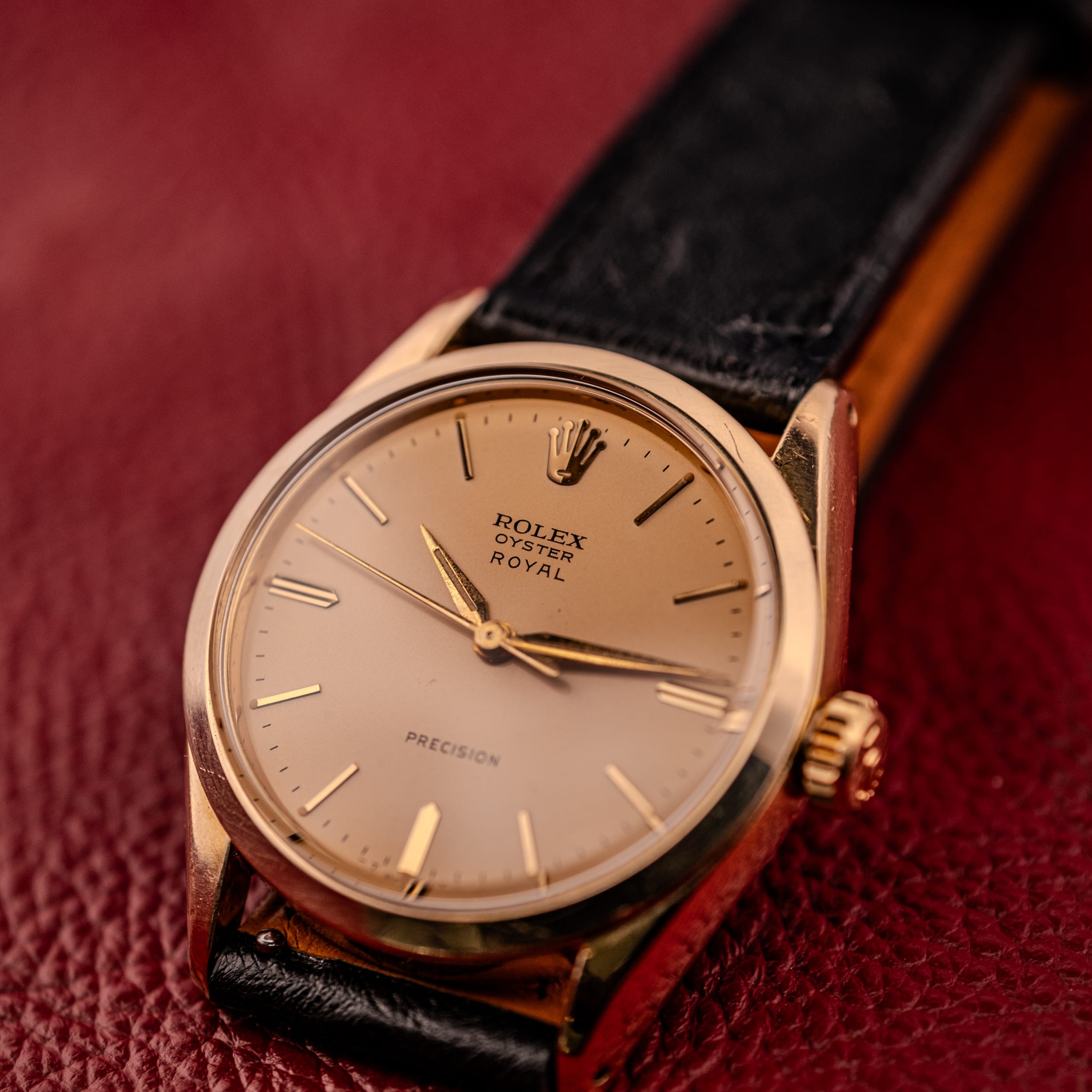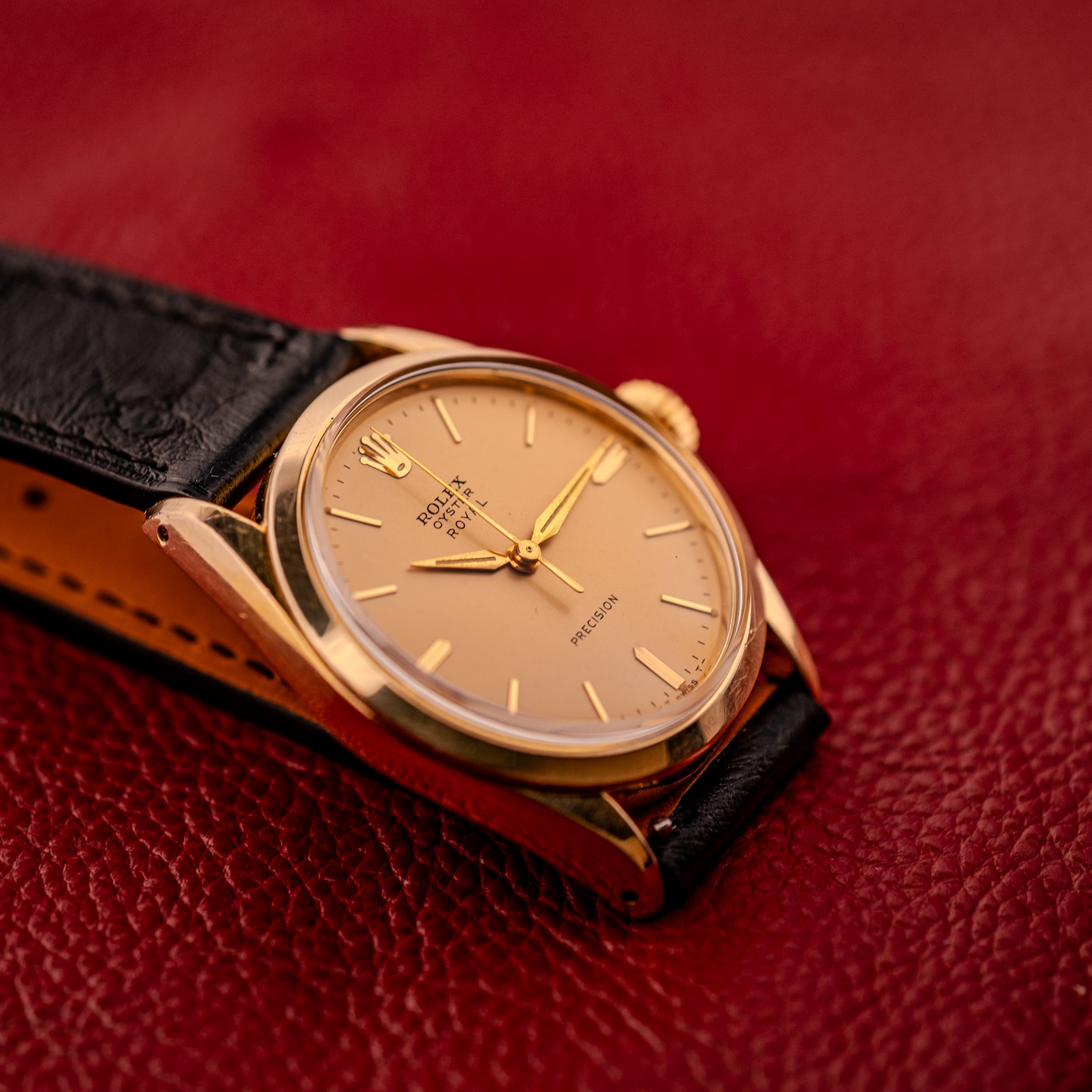 For the collector looking for a genuine Rolex Oyster at an accessible price point, or for anyone who simply appreciates the appeal of a thin, elegant, hand-wound dress watch from one of the most important names in watchmaking, the Oyster Royal Precision in gold plate is a thoroughly satisfying proposition. It is Rolex at its most fundamental, and in this condition, with this dial, it is hard to imagine a better everyday vintage watch. Presented on an OTTUHR Babele leather strap.