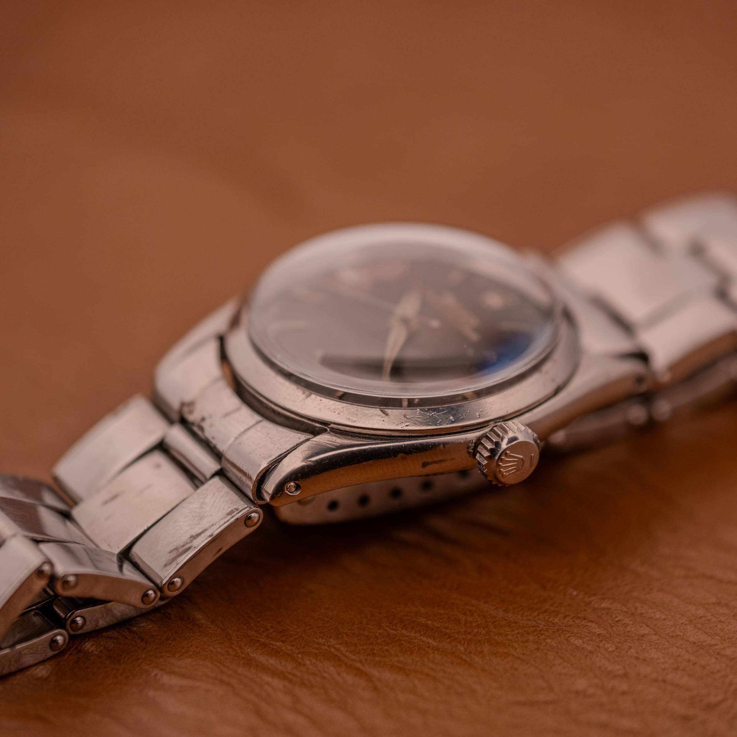 At 31mm, the Ref. 6420 wears with a compact, vintage confidence that feels remarkably current in an era where smaller watches are experiencing a well-deserved renaissance. This is not a watch that shouts. It’s a Rolex that tells a story, one written in copper and black across a dial that has been shaped by time itself. For the collector who values character over perfection, who wants a genuine 1950s Rolex on a matching bracelet at a fraction of what its larger siblings command, this Speedking is a wildly compelling proposition.