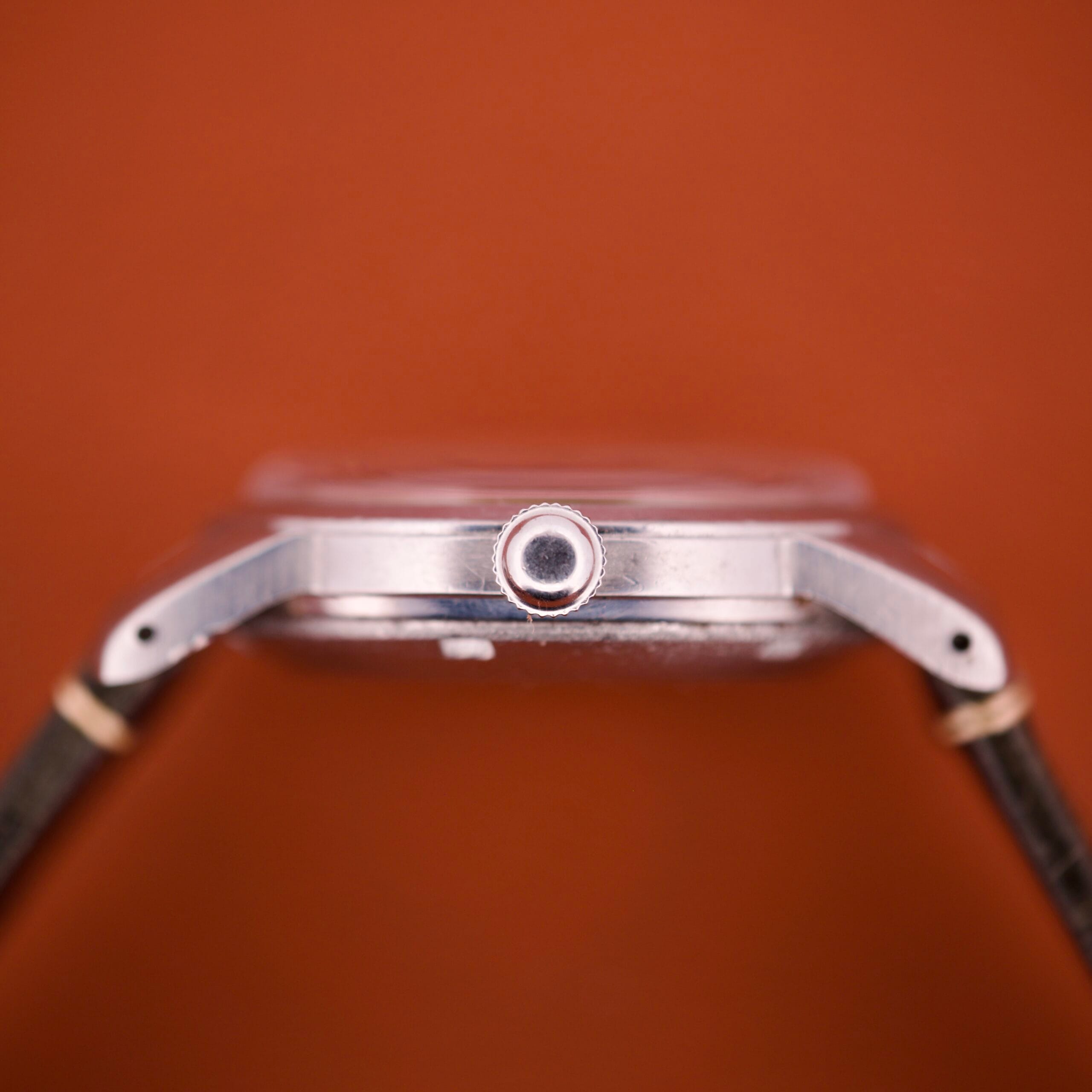 The “hook” of this watch is its charming and historically significant movement. This is not a modern, full-rotor automatic. This is a “bumper,” or “hammer,” automatic. You can see the weighted mass only swings about 120 degrees, “bumping” off two springs on its journey. This was the first generation of automatic movements, a fascinating technological bridge to the full-rotor systems that would come later. On the wrist, it provides a unique tactile feedback—a gentle “thud” as the rotor does its work, reminding you that there’s a living machine on your wrist.