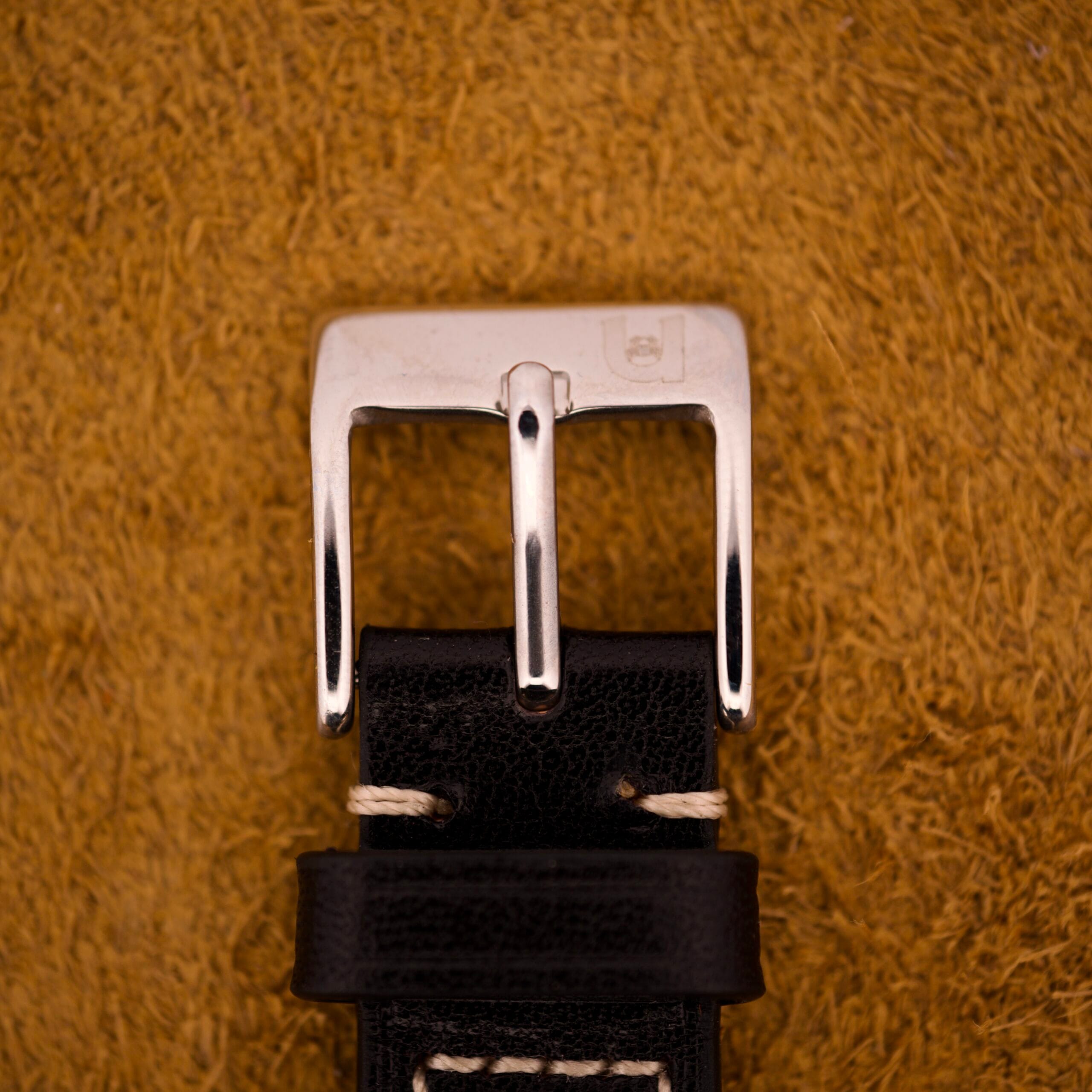 The design of this Tri-Sport is pure utilitarian cool. The most striking feature is the external 24-hour bezel. While often associated with GMT watches, on a time-only watch like this, it allowed the wearer to track a second time zone manually or simply serve as a military time reference, a feature often requested by soldiers and pilots. The matte black dial is highly legible, featuring a classic “Explorer-style” layout with prominent Arabic numerals at the cardinal points. The “monobloc” or front-loading case design is another testament to its ruggedness, eliminating the caseback seal as a potential point of water ingress.