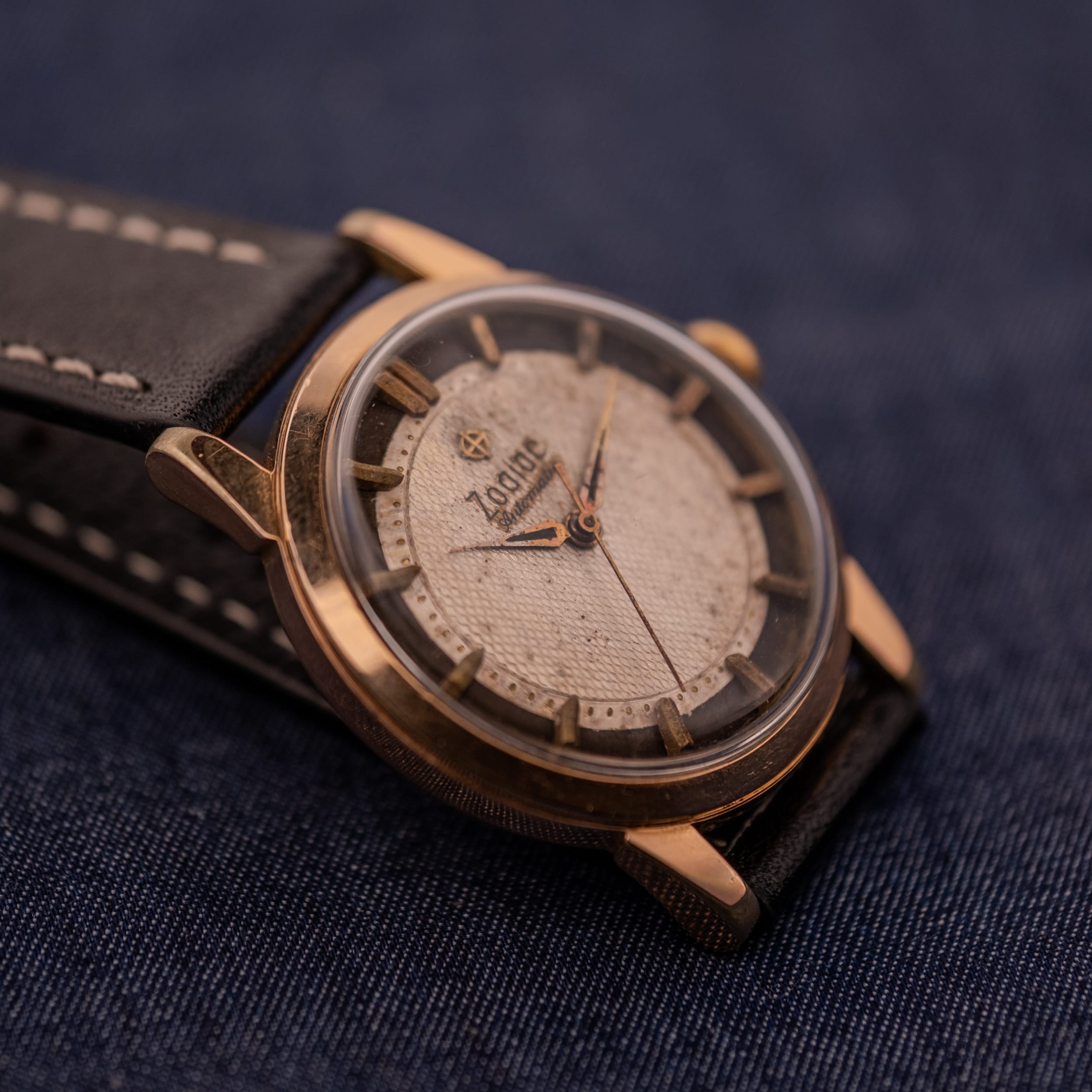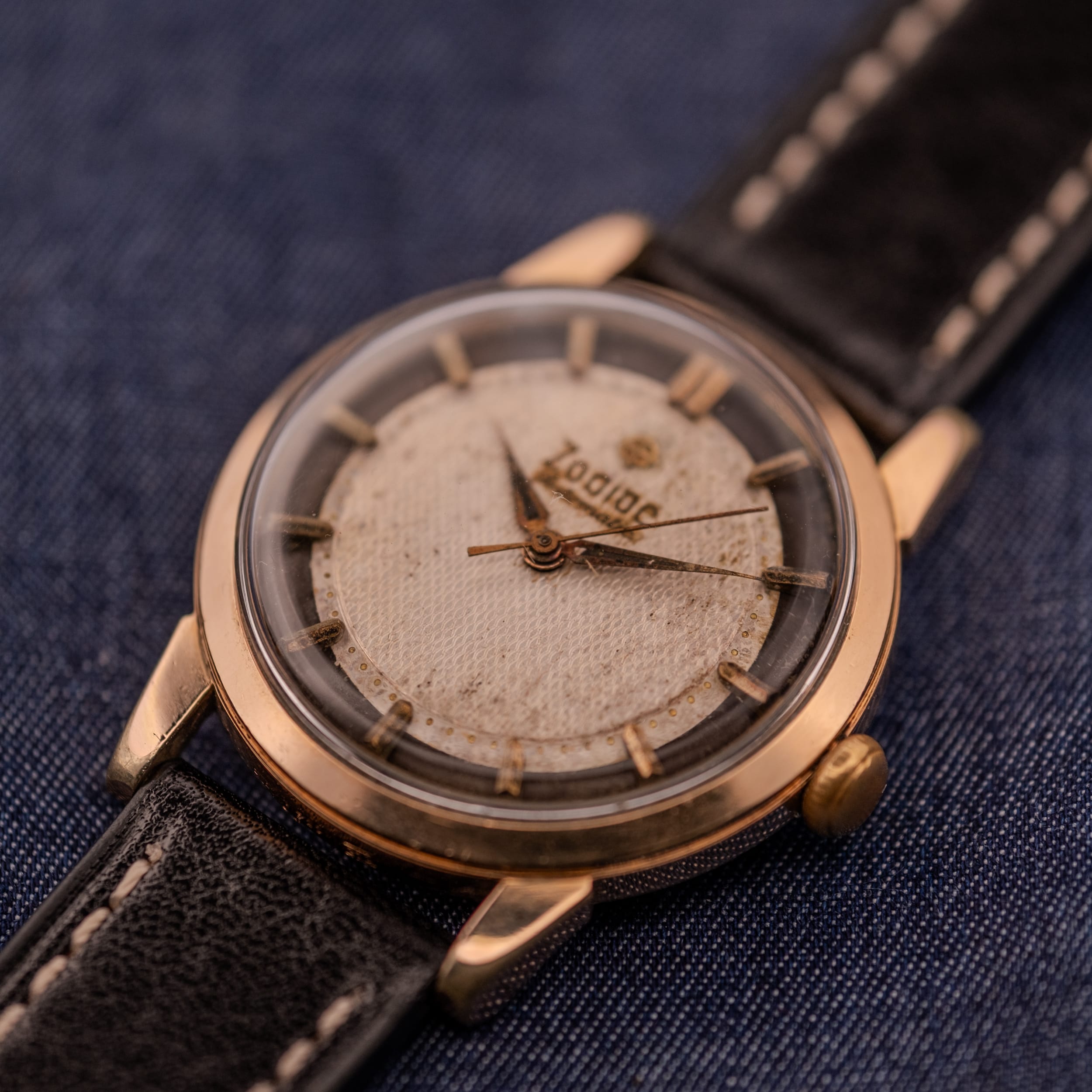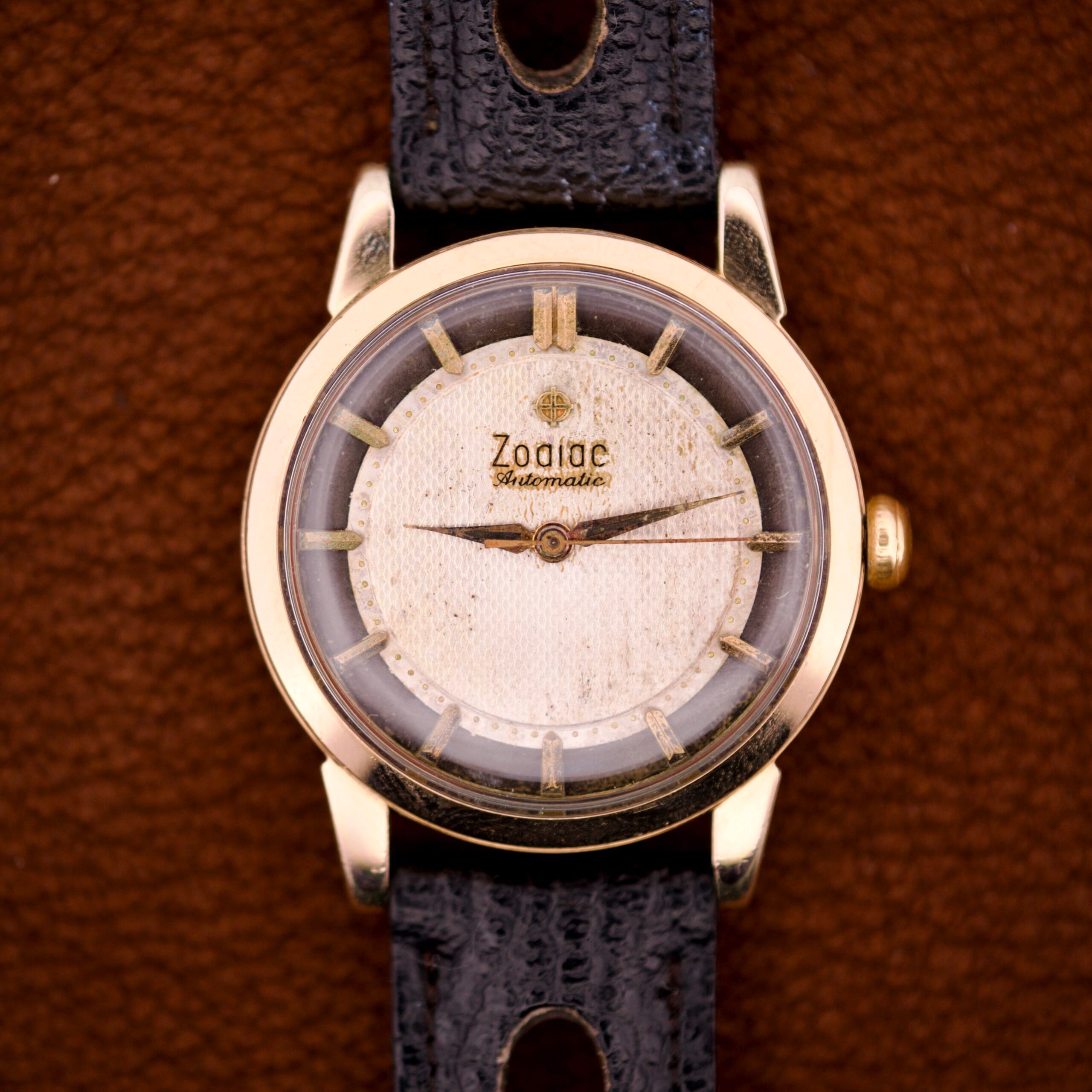 Zodiac is frequently celebrated for its legendary Sea Wolf divers and Aerospace GMTs, but looking past their tool watch catalog reveals a treasure trove of mid-century creativity. In the 1950s and 60s, Zodiac was experimenting heavily with dial textures and case architectures, resulting in dress watches that were far from boring. This Reference 688 is a perfect example of that adventurous design ethos, combining a formal two-tone layout with a case shape that refuses to be standard. It captures the whimsy of the era, offering a wrist presence that is distinctly vintage and impossible to confuse with a modern reissue.