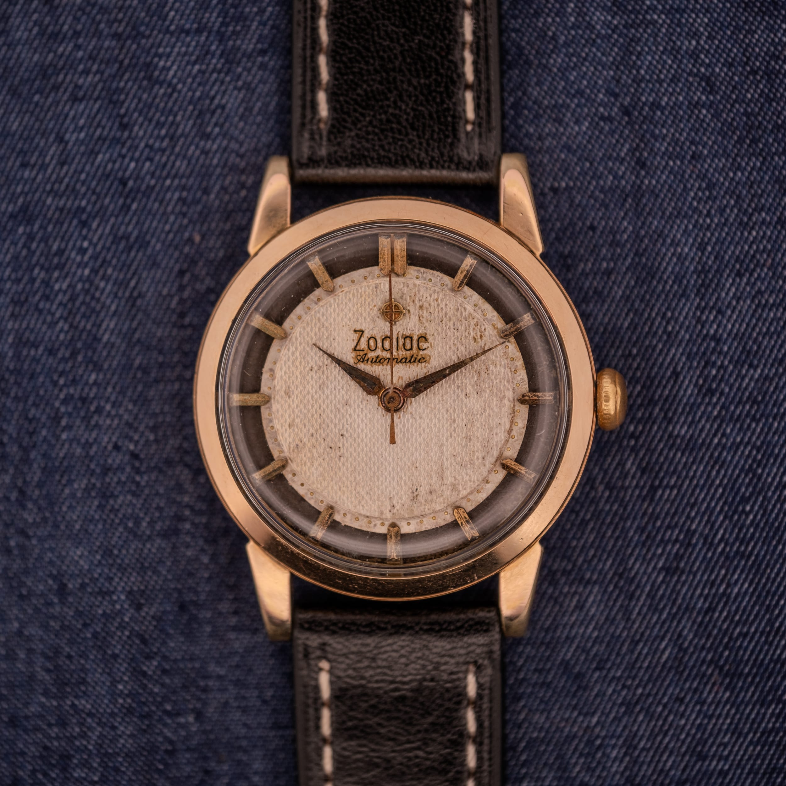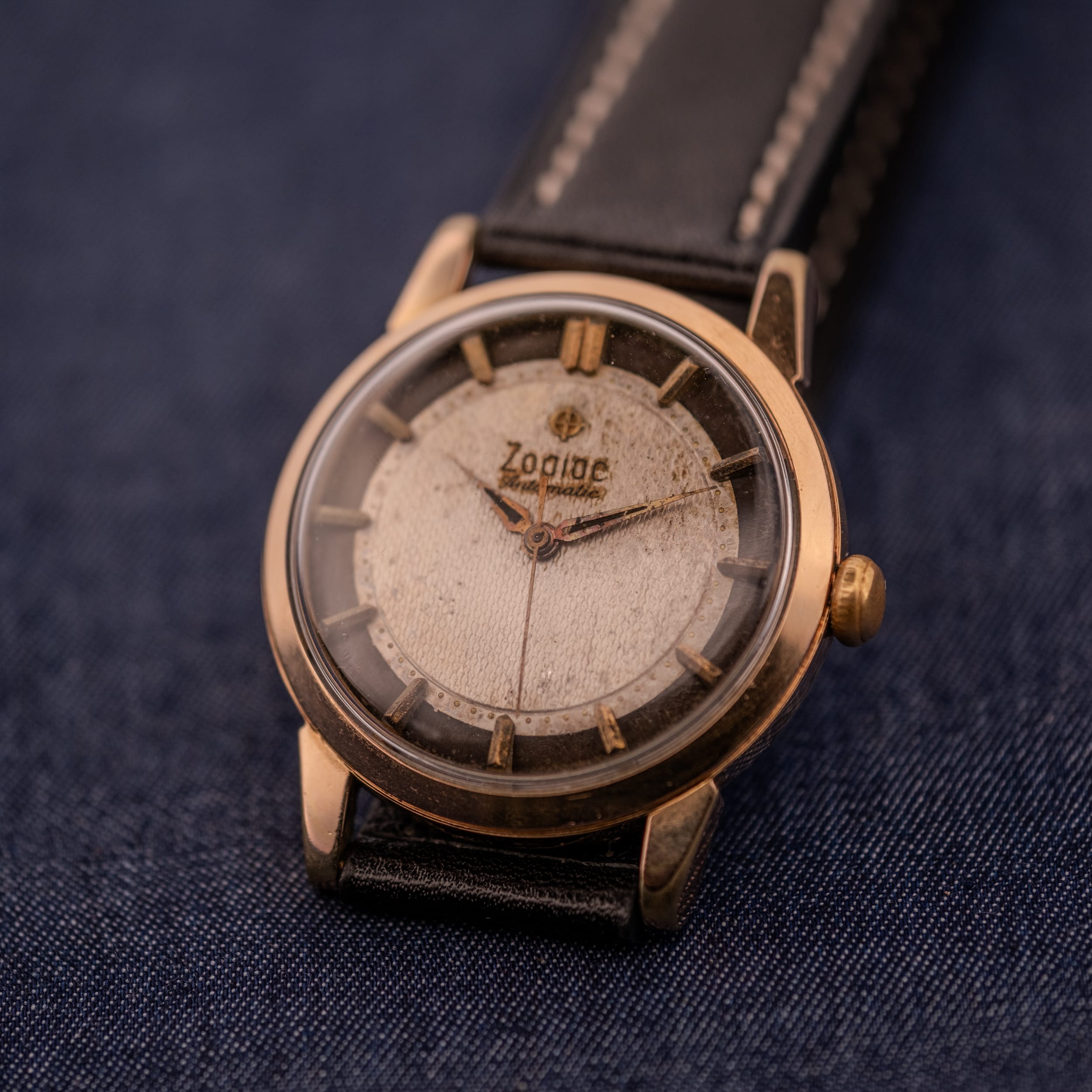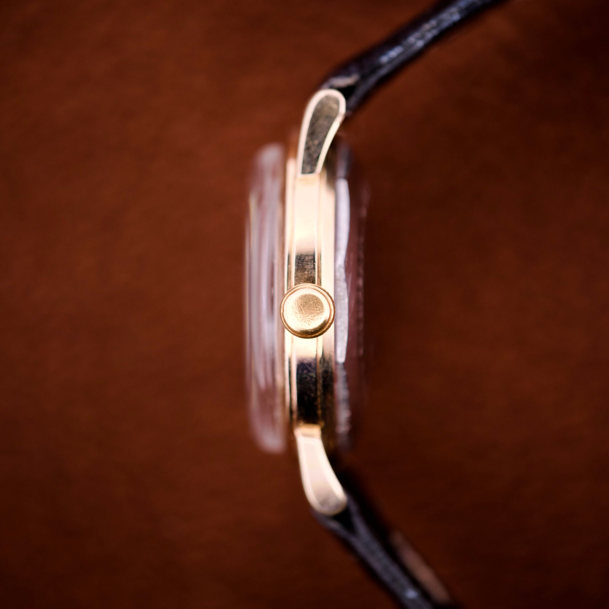 Zodiac is frequently celebrated for its legendary Sea Wolf divers and Aerospace GMTs, but looking past their tool watch catalog reveals a treasure trove of mid-century creativity. In the 1950s and 60s, Zodiac was experimenting heavily with dial textures and case architectures, resulting in dress watches that were far from boring. This Reference 688 is a perfect example of that adventurous design ethos, combining a formal two-tone layout with a case shape that refuses to be standard. It captures the whimsy of the era, offering a wrist presence that is distinctly vintage and impossible to confuse with a modern reissue.