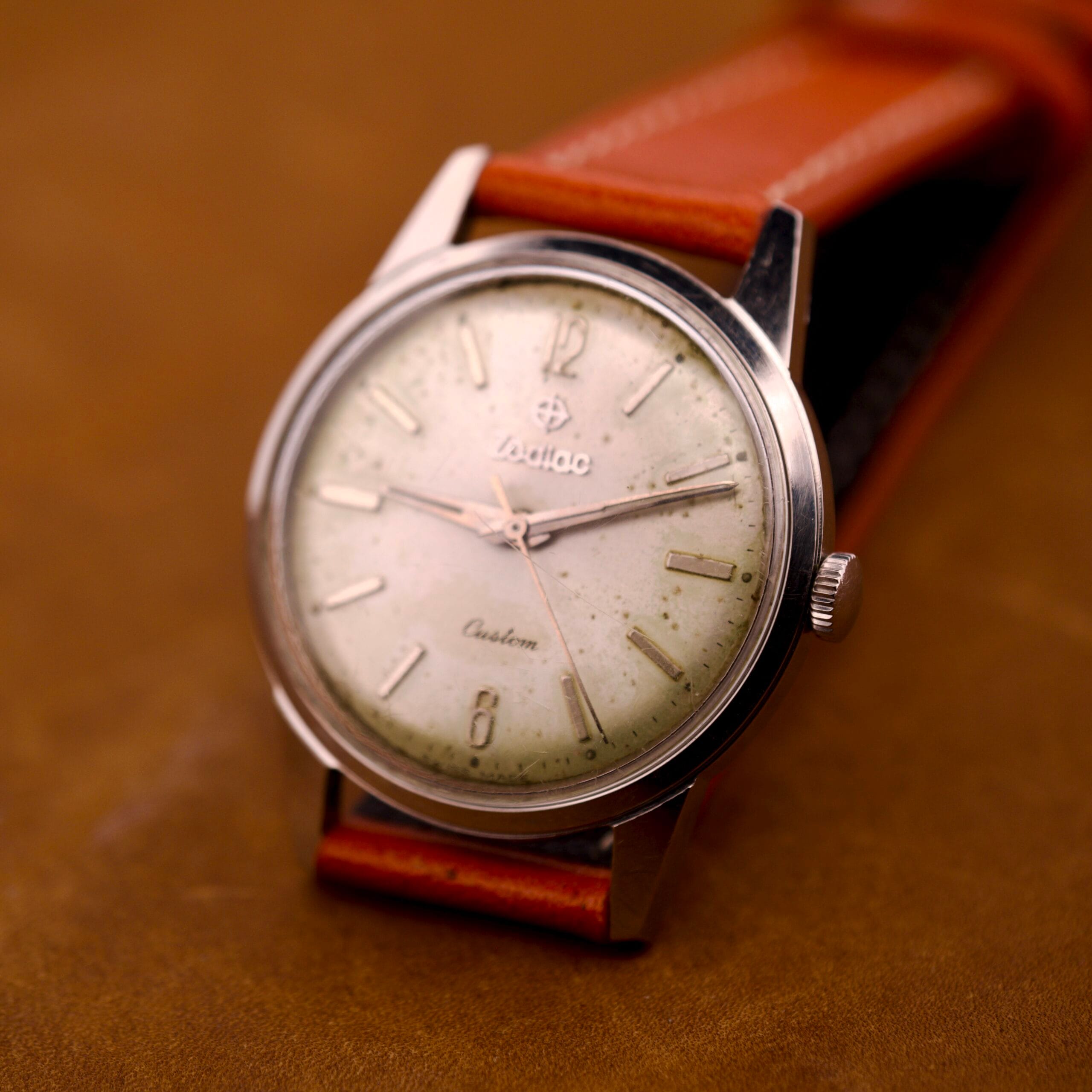 This specific example captures the essence of the “less is more” philosophy. The stainless steel case measures a classic 33-34mm, a size that was standard for men in the mid-20th century and today offers a discrete, charming presence on the wrist that slides easily under a cuff. The dial is a study in legibility, prioritizing clean lines and sharp indices over clutter. It is the kind of design that emphasizes the “Custom” nature of the watch—it wasn’t mass-market generic; it was tailored for a specific aesthetic.